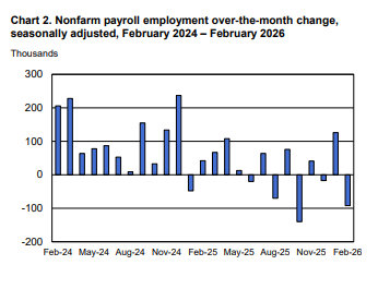 【美国2月非农意外减少爆冷录得负值 失业率升至4.4%】美国2月失业率高于预期 由于医护人员罢工以及严寒的冬季天气影响,美国在2月份意外出现了就业岗位的减少,同时失业率也上升至4.4%。美国劳工统计局发布的非农就业报告显示,上个月非农就业人数减少了9.2万人,而1月的数据则下修至12.6万人。市场就业数据的预测区间从减少9000个岗位到增加12.5万个岗位不等。除凯撒医疗集团3.1万名医护人员罢工及恶劣天气的因素外,上月就业下滑也是对一月份强劲增长的回调。经济学家表示,1月份就业岗位的增长得益于企业生死模型(BLS用于估算当月企业开张或倒闭导致的就业岗位增减)的更新。加利福尼亚州和夏威夷州的罢工活动现已结束。不过,在2025 年遭遇低谷之后,劳动力市场已开始趋于稳定,经济学家表示,这种波动是由于特朗普实施的大规模关税政策所导致的不确定性造成的。非农