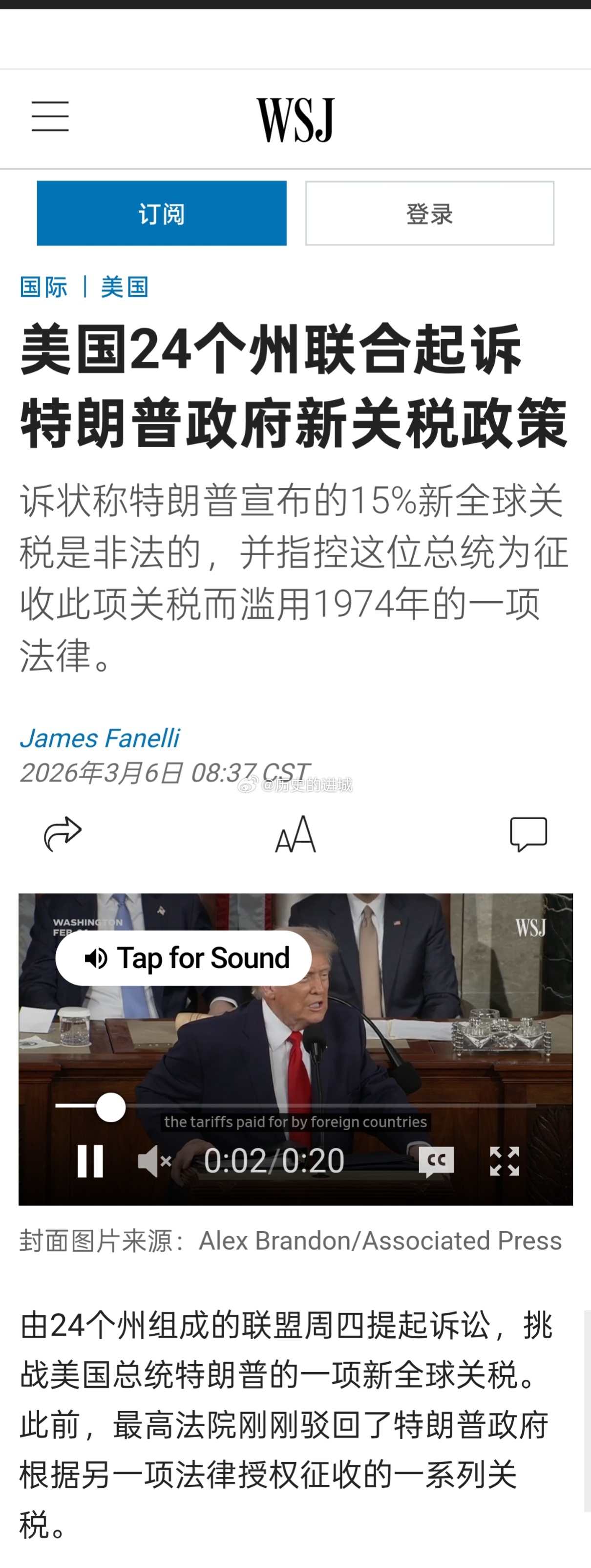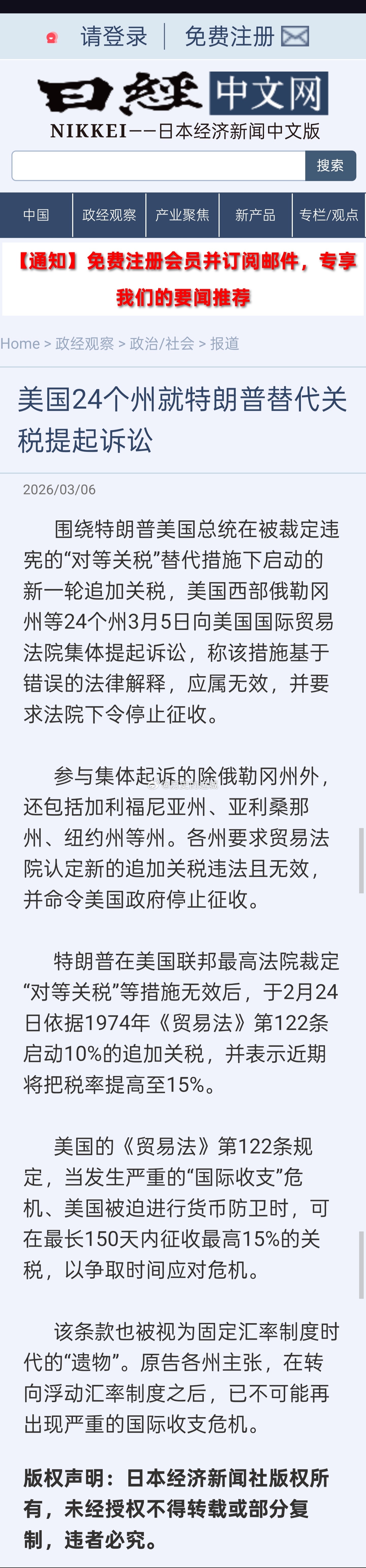 由24个州组成的联盟3月5日提起诉讼,并要求法院下令停止征收。提起诉讼,挑战美国总统特朗普的一项新全球关税。此前,最高法院刚刚驳回了特朗普政府根据另一项法律授权征收的一系列关税。