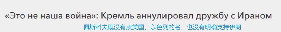 普京摊牌!俄罗斯绝不救伊朗:大国博弈,从来只讲利益不讲感情 中东战火愈演愈烈,无数人等着俄罗斯出手拉伊朗一把,可克里姆林宫的表态,直接打碎所有幻想!佩斯科夫直言:伊朗的战争,不是俄罗斯的战争,普京的意思再清楚不过——俄罗斯绝不会军事介入,更不会为伊朗与美以正面硬刚。 很多人不解:俄伊不是战略伙伴吗?关键时刻怎能袖手旁观?现实很残酷,俄乌冲突消耗殆尽俄罗斯兵力与军工产能,百万大军被钉在前线,每一发炮弹都要优先供给乌克兰战场,根本无力开辟第二战场。 更深层的是利益算计:俄罗斯的核心利益在欧洲,稳住俄乌战局、争取和解窗口,远比卷入中东泥潭更重要。俄伊条约本就无军事同盟义务,口头声援可以,出兵援伊绝无可能。 这就是真实的国际政治:没有永远的朋友,只有永远的利益。弱小国家指望大国庇护,终究是镜花水月,自身强大才是唯一底气。 锐评:别再迷信“盟友道义”,大国博弈只算利弊账。俄罗斯的选择,给所有国家上了一课:靠人不如靠己,国际舞台上,实力才是硬道理!你觉得俄罗斯是明智自保,还是背信弃义?评论区说说你的看法! 俄罗斯