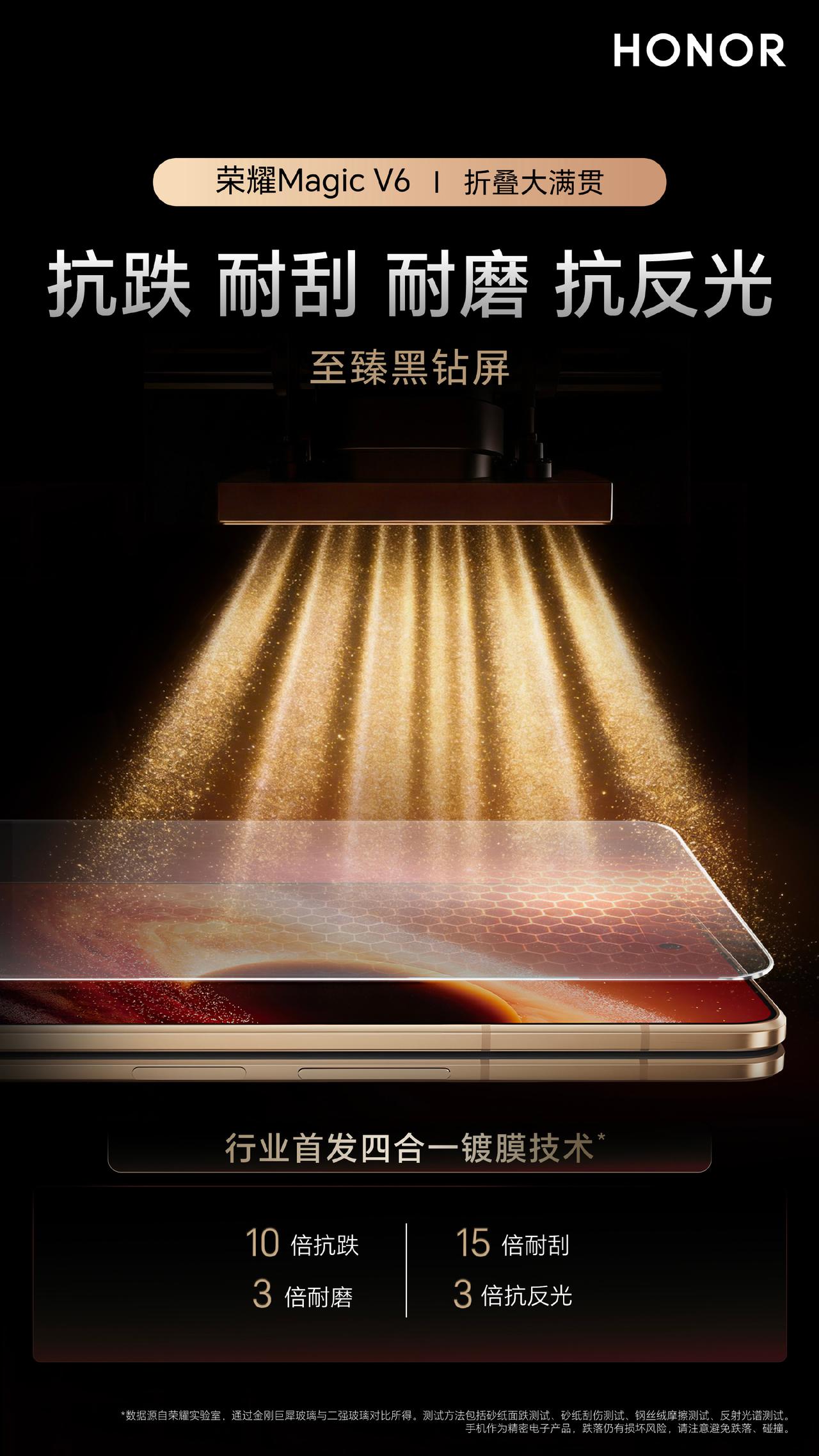 小伙伴在日常使用手机的时候,尤其是折叠屏手机的时候,怕不怕匙刮擦、沙尘磨损、强光反光这些隐形不稳定因素呢?刚刚看到荣耀产品线总裁方飞,介绍了荣耀Magic V6不妥协的选择,凭借突破性的四合一玻璃镀膜技术,日常使用耐刮耐磨,烈日下屏幕通透如镜,方总表示荣耀至臻黑钻屏不需要贴膜了,看起来非常自信 畅聊数码新品 数码资讯