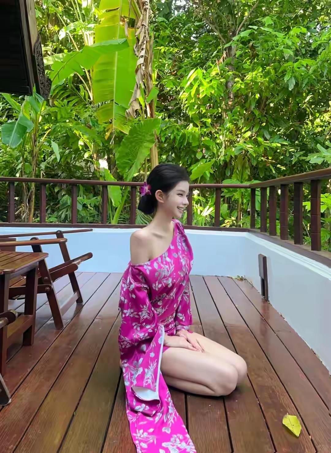 在热带植物园里,与粉色花朵一起绽放,感受大自然的美好。🌸🌿🌞你们喜欢什么类型的美女