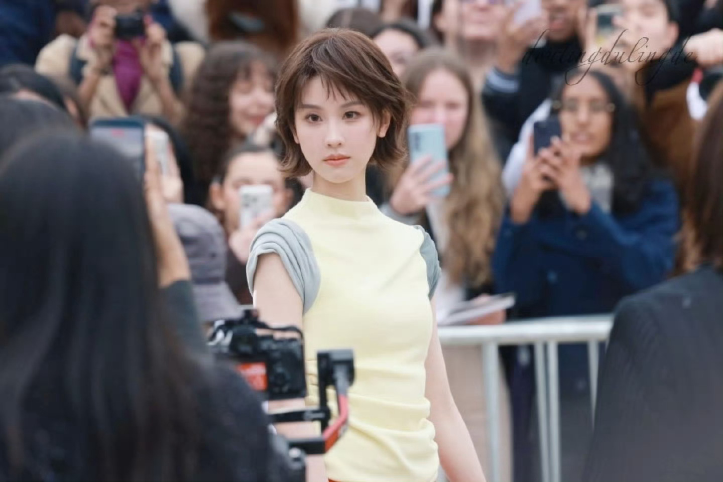 陈都灵巴黎时装周罗意威大秀,鹅黄色还有短发好适合她,率性又带有俏皮感!