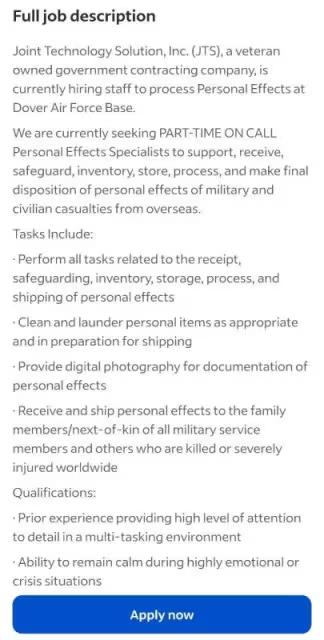 美军开始紧急招募多佛空军基地的工作人员,负责整理阵亡士兵的个人物品。 如果按照美国所说的整个中东只有6名士兵死亡,为什么还要招募两百名士兵? 最大可能是因为五角大楼严重低估了个人损失,以避免美国社会的愤怒,而美国自越南战争以来遭受了重大损失。