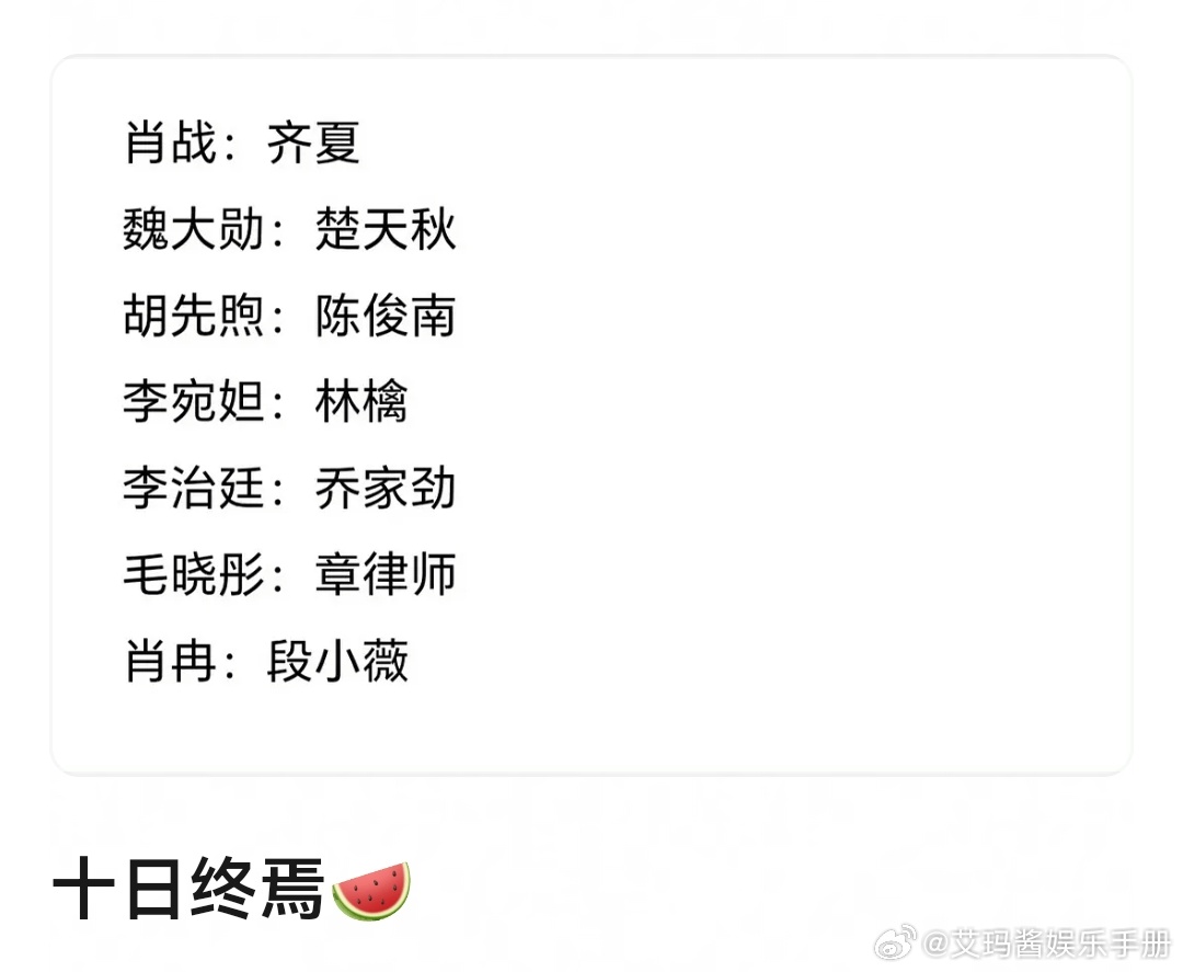 网传《十日终焉》阵容🍉合集!你觉得和角色适配度如何?肖战 魏大勋 胡先煦 李宛妲 李治廷 毛晓彤 段小薇 肖战李宛妲 十日终焉