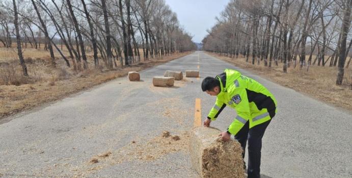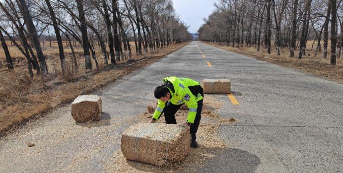 【交警变身“清障侠”,清理路面草垛保平安】3月6日,乌兰察布市交通管理支队凉城大队六苏木中队在辖区岱虎路开展日常巡逻勤务时,发现路面中央散落着大型草垛,占据一半行车道,严重影响车辆正常通行,极易引发刮擦、追尾等交通事故,存在极大安全隐患。岱虎路贯穿六苏木镇全境,是辖区重要通行道路,路面障碍物的存在给过往群众出行带来极大风险superscript:6。 发现险情后,执勤民辅警立即停车做好安全防护,迅速上前开展清理工作。面对笨重的草垛,大家齐心协力、徒手搬运,不怕脏、不怕累,将散落的草垛逐一移至路边安全区域,及时消除道路安全隐患,恢复正常通行秩序。此举践行了交管部门日常巡逻中及时排查处置路面隐患的工作要求,全力防范道路交通事故发生superscript:4。 此次快速处置,有效保障了辖区道路交通安全畅通,充分展现了凉城交管民辅警履职尽责、为民服务的责任担当,用实际行动守护群众平安出行路,彰显了“人民公安为人民”的初心使命。 (通讯员:乌兰察布市交管支队凉城大队 郭苗苗 初审:陈婉彤 复审:孟祥婧 终审:张瑞 校对:陈婉彤 校审:孟祥婧 校发:张瑞 编辑:郝晓霞)
