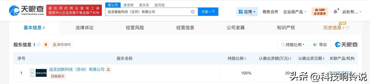 【追觅科技在浙江成立智能科技公司 注册资本2000万】 天眼查工商信息显示,3月6日,追觅智能科技(玉环)有限公司成立,法定代表人为王庆凯,注册资本2000万人民币,经营范围包括智能机器人的研发、家用电器研发、工业机器人制造、服务消费机器人制造等。股东信息显示,该公司由追觅科技旗下追觅创新科技(苏州)有限公司全资持股。 天眼查信息: