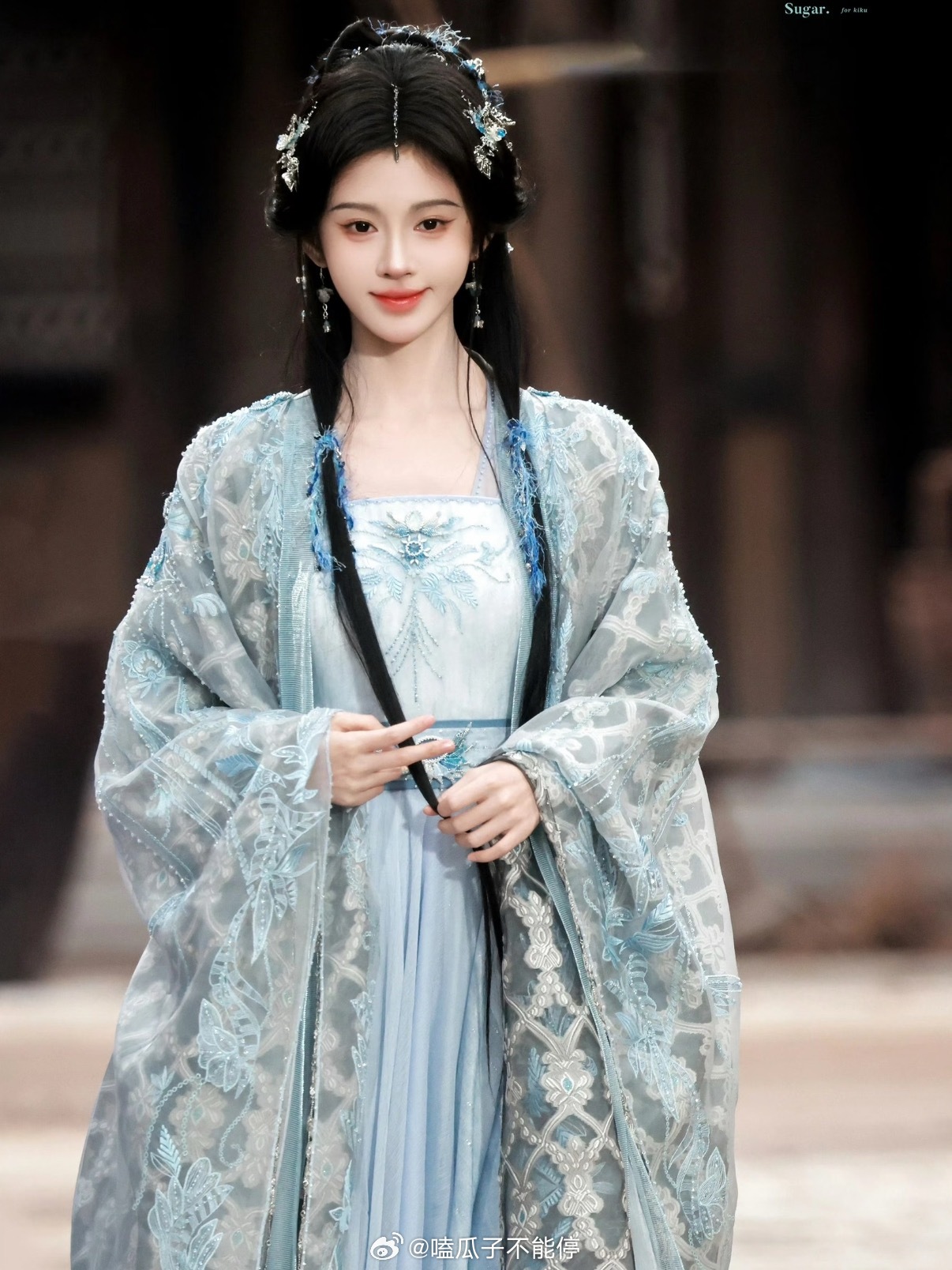 李一桐木格窗漏进的月光把亮片裙织成流动的河她斜倚在朱红的栏上发梢垂落,像