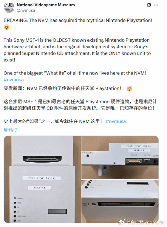“任天堂PlayStation”原型机入藏电子游戏博物馆当任天堂与索尼在90年代初分道扬镳时,没人想到那场失败的合作竟孕育了游戏史上最著名的“如果”——而现在,这段历史的唯一实物见证,终于找到了永久的归宿。美国国家电子游戏博物馆(NVM)宣布,已成功收藏一台堪称圣物的稀有文物:索尼MSF-1“任天堂PlayStation”原始开发系统。这台机器不仅是已知现存最古老的任天堂PlayStation硬件,更是同类中唯一存世的开发原型机,其历史价值无可估量。这台编号为MSF-1的设备,是1990年代初索尼与任天堂秘密合作的产物。由索尼的“PlayStation之父”久多良木健主导,双方计划为超级任天堂(SNES)开发一款能够播放CD-ROM的光驱附件。在任天堂同时与飞利浦接洽同类项目后,合作破裂,数百台原型机大多被销毁或遗失。索尼随后将积累的技术与经验转向独立游戏主机开发,最终诞生了改变行业格局的初代PlayStation。因此,这台原型机不仅是两家巨头短暂联姻的见证,更是整个PlayStation帝国的技术原点。与其他偶然现身于杂物堆、泛黄斑驳的几台原型机不同,这台MSF-1的特殊之处在于其“身份”——它是原始开发系统,在设计师尚未对外观进行任何修饰打磨之前就已诞生,通体方正、接口裸露,纯粹为功能而生,却也因此更具工业遗迹的震撼力。NVM官方在社交媒体上感叹:“游戏史上最大的‘如果’,如今安家于此。”随着这件稀世珍品入藏博物馆,未来将有更多人有缘一睹这段被尘封三十余年的历史。从实验室的废弃原型,到游戏产业的分水岭,这台不起眼的灰盒子诉说的,正是那个决定行业走向的瞬间。