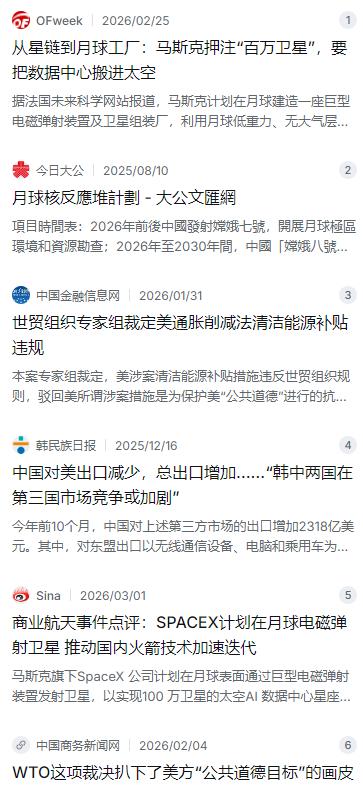 中美博弈,已经到了最关键的时刻,可以说是生死存亡。如果我们败了,未来一百年将再无可能,如果赢了,未来一百年,甚至更长,我们的发展将不会再有国家敢打压我们,中国人民的幸福生活指日可待。   麻烦看官老爷们右上角点击一下“关注”,既方便您进行讨论和分享,又能给您带来不一样的参与感,感谢您的支持!   这是一场没有硝烟却关乎国运的较量。眼下这局势,明眼人都能看出来,中美博弈已经进入了真正的深水区,说是到了“较劲”的关键时刻一点也不夸张。这五年要是顶住了,往后的路就是坦途;要是这关口松了劲,那可能真得再等上几十年。好在我们看得见,从上到下,从科技到经济,从南海到太空,咱们手里的牌不仅没少,反而越打越顺。   先说头顶上的这片天,现在成了新的竞技场。马斯克那家伙野心不小,刚提了个疯狂计划,要在月球上装个电磁“弹弓”,往地球轨道上打卫星,最后凑齐一百万颗,在太空建个AI数据中心 。美国那边还盘算着在月球表面搞核反应堆,想把能源站也建到月亮上去。这手笔听着唬人,但咱们也没闲着。嫦娥七号马上就要出发,去月球南极找水冰,这可是未来建站的命根子。咱们跟俄罗斯联手,打算在2035年前后把核动力装置送上月球,给未来的国际科研站供能 。这太空就这么大,轨道资源就这么多,谁先占下算谁的,这场“太空竞速”咱们不仅跟上了,步子还踩得很稳。   再把眼光收回地面,经济这块硬骨头,咱们也啃出了新路子。前两年美国搞的那个《通胀削减法》,想用补贴把新能源产业链圈在自己家里,摆明了是贸易保护。但这回咱们没惯着,直接去世贸组织告了一状。就在今年1月底,世贸组织裁定咱们赢了,明确指出美国那套补贴违规,驳回了他们那套“保护公共道德”的说辞 。这叫以其人之道还治其人之身,你玩规则,咱们就在规则里跟你讲明白道理。当然,官司赢了是一码事,生意还得做实在。数据摆在这,去年头10个月,咱们对美出口确实降了些,但总的出口盘子反而更稳了。对东盟的生意涨了14%以上,对非洲更是猛增了26% 。这就是东方不亮西方亮,你把门关小了,咱们就把朋友交得更多,路子走得越宽。   南海和台海这片水,最近也不平静。美国那边刚把“海马斯”火箭炮和自杀式无人机交到了台当局手里,还拉着日本、菲律宾在巴士海峡搞军演,意思很明显,就是想在这片海域给咱们上眼药。但他们演他们的,咱们练咱们的。解放军压根没废话,直接在南海摆开阵势,巡航了四天,全是实打实的实战化部署 。这就像两个高手过招,对方在那虚晃一枪,咱们直接一拳打到实处,告诉他们这地方谁说了算。主权这种事,靠嘴皮子没用,得靠真家伙在场。   其实说到底,不管是外面的科技封锁还是贸易壁垒,最后都得靠咱们自己的家底厚不厚。华为这帮企业争气,国产芯片替代的路子虽然难,但一步一个脚印走得扎实。咱们最硬的后台是什么?是那全世界独一份的完整工业体系,是每年一千多万毕业的工程师大军,是一个14亿人的超级大市场 。有了这些底子,人家想卡脖子,就得掂量掂量能不能卡得住。这就像一个练了内功的人,你光在外头推他几把,他晃一晃,但倒不了。   未来的这五年,是个明明白白的战略窗口期。咱们要的不是跟谁争老大,而是要把属于自己的发展机会牢牢抓在手里。台岛必须统一,南海必须安宁,芯片必须自己造,市场必须多元化。这些事办成了,往后一百年,咱们的子孙后代过的日子,那才叫真正有底气的安稳日子。这场博弈,咱们退不得,也根本没想过退。