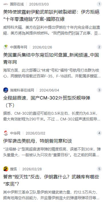 特朗普这回恐怕是彻底睡不着觉了!本以为两艘航母能把伊朗吓破胆,结果一份来自东方的“神秘大礼”直接让他傻了眼,这仗还能打吗?我看悬! 麻烦看官老爷们右上角点击一下“关注”,既方便您进行讨论和分享,又能给您带来不一样的参与感,感谢您的支持! 特朗普这回恐怕是彻底睡不着觉了。原本以为把“福特号”和“林肯号”两艘航母往中东一横,摆出杀气腾腾的架势,就能把伊朗逼回谈判桌乖乖签字。结果倒好,航母的坐标现在反而成了伊朗导弹部队的活靶子,这份憋屈换谁都得失眠。这仗还没正式开打,白宫的战情室里就已经弥漫着一股骑虎难下的尴尬味儿。 事情的起因还得看特朗普的算盘。他一直信奉“极限施压”这套拳法,这次更是下了血本,把美国海军最先进的“福特号”航母战斗群调往地中海,配合已经在阿拉伯海待命的“林肯号”,搞了个双航母的豪华阵容 。按照常理,这种级别的武力展示,足够让一个小国瑟瑟发抖。特朗普的目的很明确,就是要赶在核协议谈判的最后关头,用刀架在脖子上的方式,让伊朗接受那个“十年零浓缩铀”的苛刻方案——也就是让伊朗彻底放弃提纯核材料的能力,以后要核燃料都得看美国脸色 。 可伊朗这次的回应,让华盛顿有点懵圈。虽然伊朗手头的确缺乏能与F-35正面对抗的先进战机,但他们手里攥着的是另一张牌——那些藏在深山导弹基地里的“航母杀手”。伊朗现在的反舰能力,可以说结合了东方大国外贸武器的技术底子。特别是他们列装的那些超音速反舰导弹,技术特征和公开亮相的CM-302(也就是鹰击-12的外贸版)极其相似。这种导弹飞起来可不是闹着玩的,3到4倍音速的冲刺速度,290公里的有效射程,贴着海面飞过来的时候,留给航母反应的时间也就几十秒 。一艘航母扛一两发可能还能撑住,但如果几十发、上百发同时从岸基阵地和快艇上打过来,那就是标准的“饱和攻击”,美军的宙斯盾系统防空压力陡增,谁也不敢保证能全拦下来。 更要命的是,伊朗手里的家伙什远不止这几件反舰导弹。最近他们连压箱底的“法塔赫-2”高超音速导弹都拉出来实战了,这东西速度飙到15马赫,1400公里的覆盖半径,整个中东美军基地都在它的阴影之下 。再加上那几千枚随时可以覆盖以色列和海湾产油国的中程弹道导弹,以及密密麻麻的自杀式无人机,现在的伊朗简直就是一个浑身长刺的豪猪。美军虽然拳头硬,但想在不挨扎的情况下全身而退,基本不可能。 特朗普现在最头疼的,还不是导弹本身,而是那些往日称兄道弟的盟友集体“撂挑子”。以前打伊拉克、打利比亚,沙特、阿联酋这些海湾富国不是出钱就是出地。这次倒好,仗还没打,沙特王储就抢着给伊朗总统打电话,拍胸脯保证绝不会让美国利用沙特的地盘去炸伊朗 。阿联酋、卡塔尔也赶紧跟着表态,跟撇清关系似的,生怕战火引到自己家。这帮盟友心里门儿清,伊朗打不着美国本土,但收拾他们这几个邻居的小目标,那是分分钟的事。以色列倒是想打,但自己深陷加沙和黎巴嫩的泥潭里还没拔出来,哪有余力给美国当急先锋 ? 这么一来,美军那两艘威风凛凛的航母,反倒像两座漂在海上的孤岛。打吧,胜算实在没底。即便美国能摧毁伊朗的核设施,但也防不住伊朗随后发起的疯狂报复。霍尔木兹海峡一旦被封,全球油价得窜到天上去,美国国内那本来就没降下来的通胀,立马会变成压垮经济的稻草 。可不打吧,特朗普这张脸又没地儿搁。牛吹出去了,兵派出去了,最后灰溜溜撤回来,以后还怎么在全球混?那些等着看美国笑话的对手,怕是做梦都能笑醒。 这几天华盛顿传出的风声也挺有意思。据说五角大楼内部给特朗普做汇报时,重点提的不是怎么打赢,而是“弹药库存可能撑不住”。精确制导导弹和防空拦截弹这种高端货,生产线拉满也供不上高强度消耗,按测算,该地区部署的防御弹药可能十几天就见底了 。加上国会那边民主党正憋着大招,准备拿“战争权力决议”给特朗普上套,逼他撤军 。现在的情况就是:特朗普本想玩一把大的,结果发现自己被架在火上烤。这仗要是真打起来,恐怕就不是“美国教训伊朗”,而是双方互相放血、看谁先倒下的惨烈赌局了。