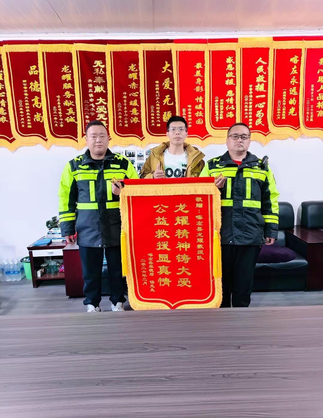 @所有人 📢📢正月初九夜间离家女孩被寻回,今日家属来到喀左龙耀救援总队送来锦旗一面作为答谢。