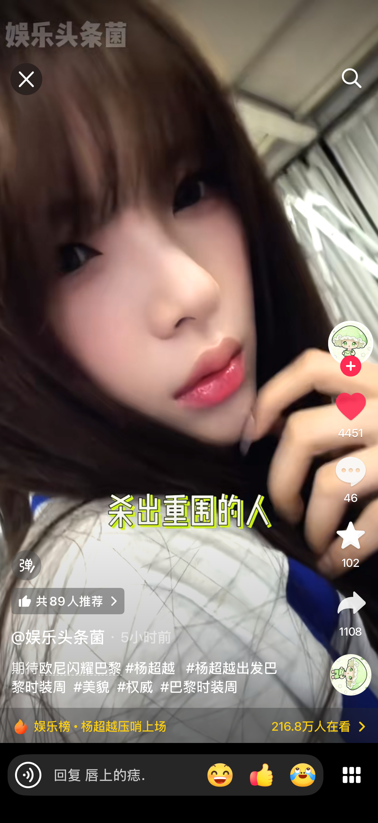 杨超越杨超越巴黎世家品牌挚友 ·杨超越的脸只有一个巴掌大