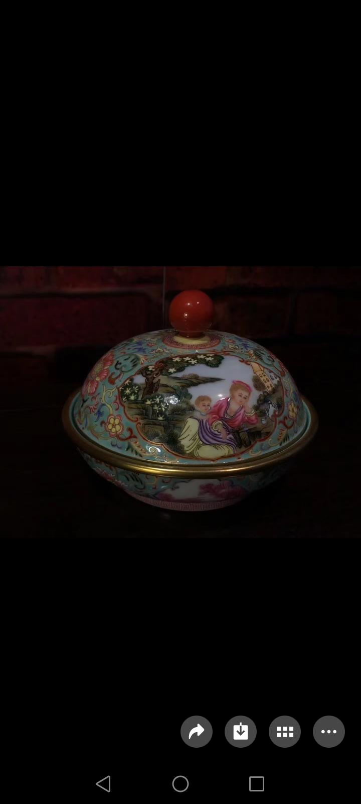 清乾隆年制八棱口福寿黄地缠枝开光描金龙凤,蝈蝈耳通景山水人物庭园元宝尊~举世无双