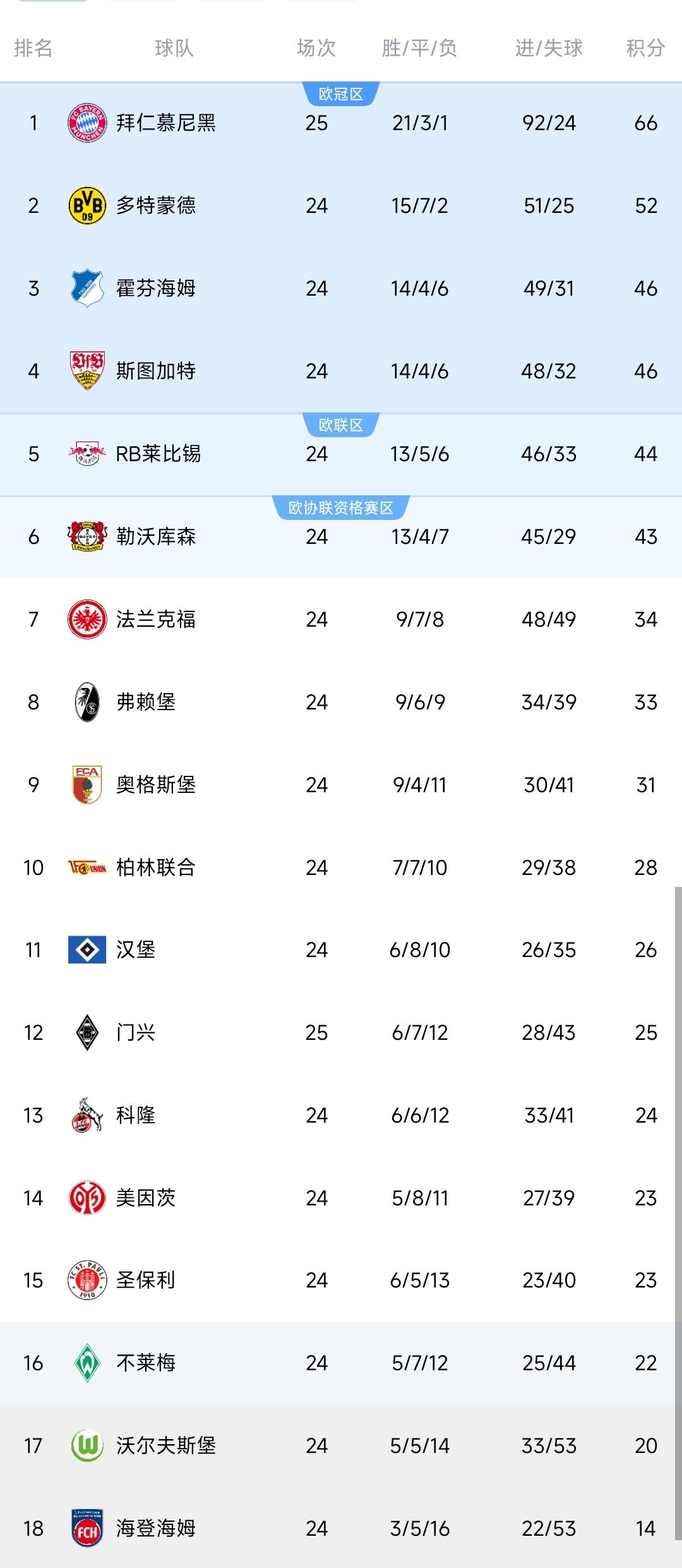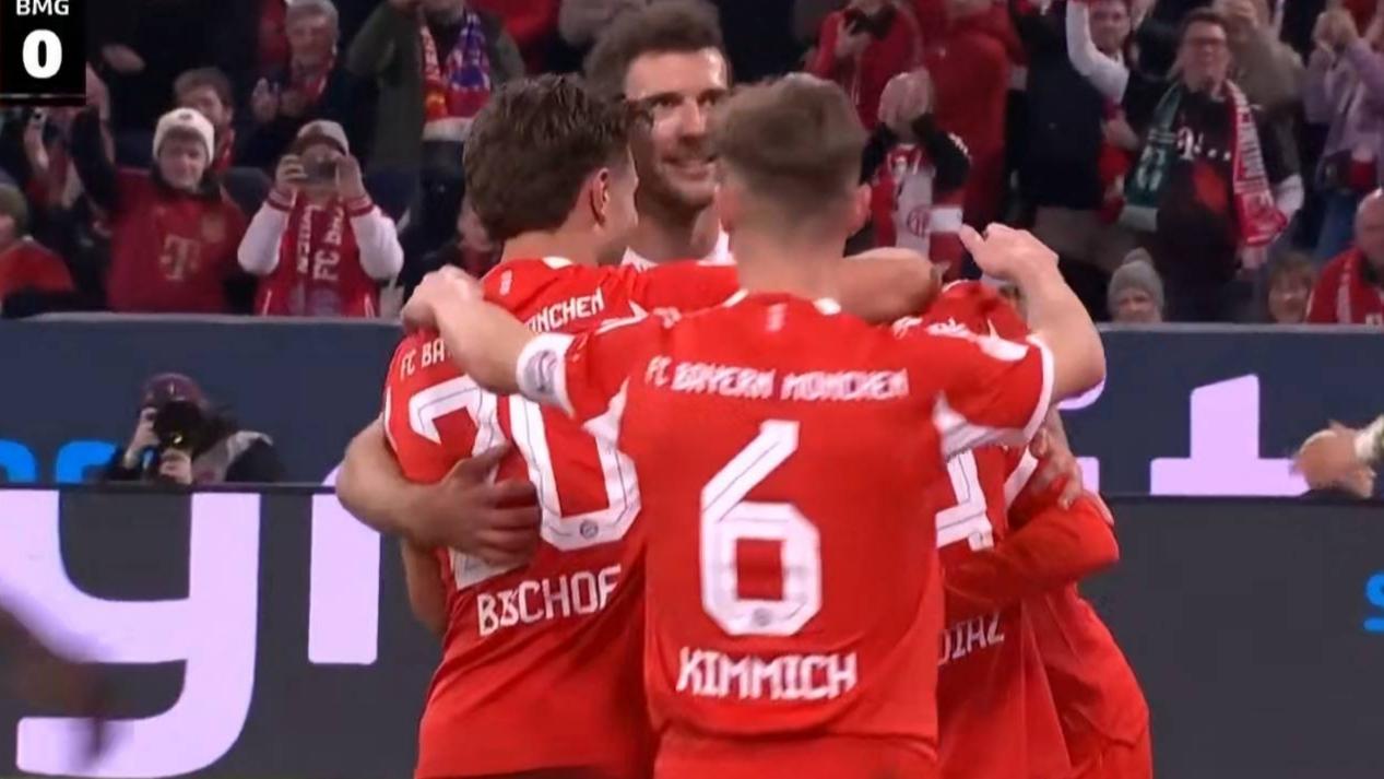 德甲领头羊挡不住! 拜仁4-1大捷,甩开第二名14分! 北京时间3月7日,德甲联赛第25轮,领头羊拜仁对阵门兴。 拜仁当家球星凯恩缺席,开局10分钟卡尔破门但越位无效,随后队伍持续压制,组织进攻寻找破绽,终于等到第32分钟格雷茨卡挑传送助攻,快速插上的迪亚斯禁区凌空抽射入网(1-0),他们打破平衡局面。 落后的门兴别无他法,没能摆脱对手控制,只能是尽力干扰,但显然难以改变结果。拜仁耐心串联,上半场补时快攻渗透直接打穿防线,迪亚斯禁区冷静横传,莱默尔顺势推射破门(2-0),手握两球优势是非常稳定。 门兴下半场回来再收坏消息,赖茨禁区身后拉拽犯规,主裁给出红牌+点球的判罚,少打一人让他们彻底失去希望。第57分钟穆西亚拉点球主罚命中(3-0),拜仁继续稳固优势,随后主教练相继作出轮换,毕竟即将迎来欧冠淘汰赛,他们得要留存体力。 尾声阶段第79分钟卡尔突破横传门前,雅克松轻松包抄得手锦上添花(4-0)。门兴最后时刻没有放弃,第89分钟穆赫亚替补建功避免被凌风。最终拜仁4比1告捷,继续稳固榜首优势。 德甲最新积分榜出炉,拜仁先赛一场积66分,领先第2的多特14分,优势比较明显,联赛冠军大有希望。