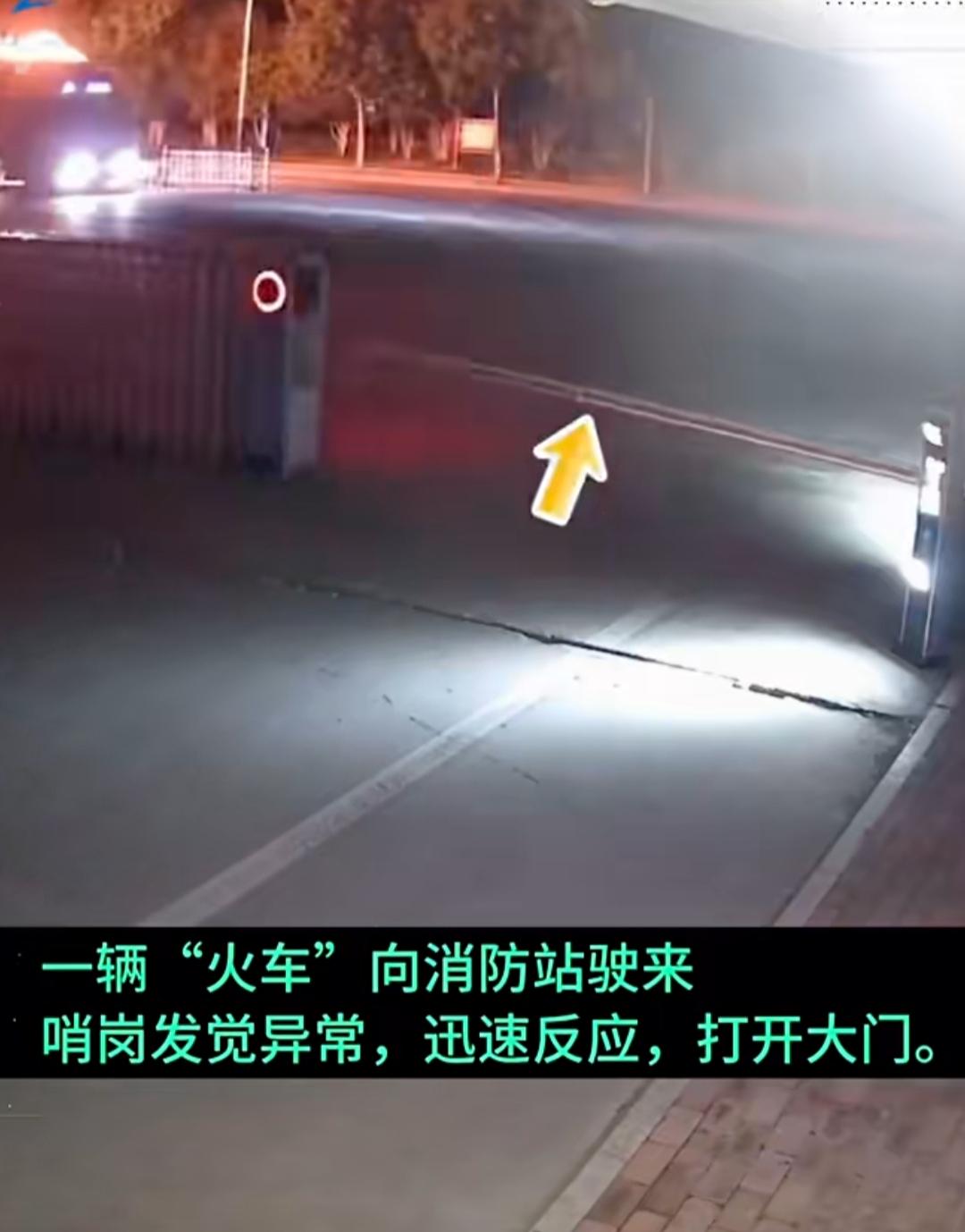 深夜的消防站,本应是一片宁静。岗哨的哨兵正警惕地注视着前方,突然,一阵刺眼的强光和滚滚浓烟,裹挟着巨大的引擎声,从远处疾驰而来。一辆浑身裹着火焰的货车,像一头失控的巨兽,正朝着营区大门冲来。 这不是演习,而是一场生死时速的救援。货车司机在行驶途中发现车辆自燃,在火势无法控制的危急时刻,他做出了最勇敢的选择:直接将“火车”开到最近的消防站求救。 就在这千钧一发之际,岗哨哨兵展现出了惊人的专业素养。他没有丝毫犹豫,在货车抵达前的10秒,果断按下了开门按钮,厚重的营区大门应声而开。紧接着,他冲出值班室,一边大喊“快点跟我来!”,一边在前面引路,将这辆随时可能爆炸的“火车”精准引导至营区内的空旷安全区域。 这宝贵的10秒,为后续的灭火战斗赢得了先机。当货车停稳的瞬间,早已闻警而动的消防员们如离弦之箭般集结到位。他们迅速判断火情,确定着火物,制定方案,水带铺设、水枪喷射,一系列动作行云流水,在最短的时间内成功将大火扑灭,避免了一场可能发生的重大事故。 事后有人问,岗哨就不怕这辆“火车”在营区里爆炸吗?他只是淡淡地说:“我们的职责,就是在最危险的地方,给群众最坚实的依靠。” 这10秒的提前开门,不仅是一次高效的应急处置,更是刻在骨子里的责任与担当。它告诉我们,所谓的岁月静好,不过是有人在你看不见的地方,时刻准备着为你挡下所有的危险。生死十秒钟 火车闯营区
