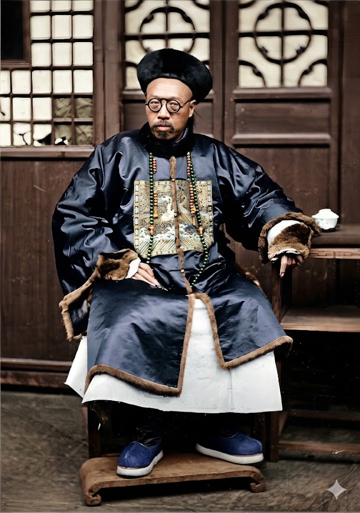 这张照片,由苏格兰摄影师约翰·汤姆逊于1868-1869年在广州拍摄,照片中的人物是时任两广总督的叶赫那拉·瑞麟,他是慈禧太后的同族(族叔)。