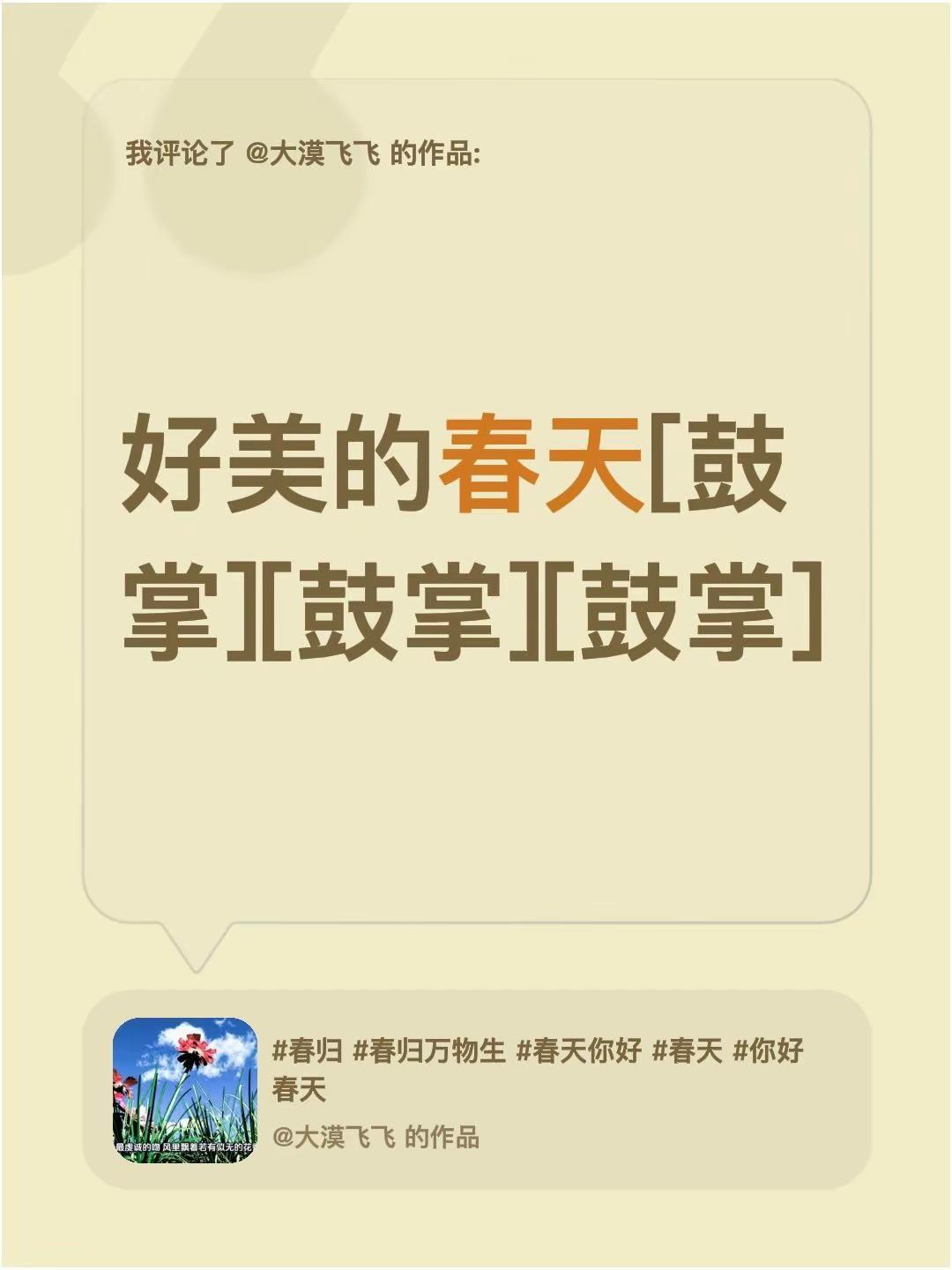 我评论了@大漠飞飞的作品:好美的春天[鼓掌][鼓掌][鼓掌]