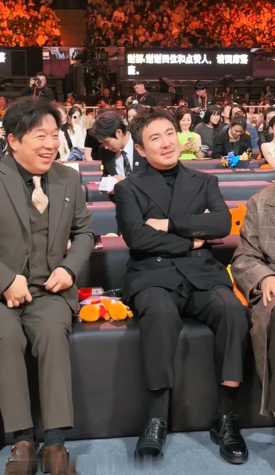 沈腾,你就不能准备一条合适点的裤子?这是来之前临时抓了一条裤子穿吗?两边的黄渤和邓超的裤子一对比,看着腾哥的裤子属实有点惨,人家的裤腿撑死就到脚脖子了,腾哥的裤腿都到腿肚子上了,还露着一小截肉,看着挺冷的!沈腾 黄渤