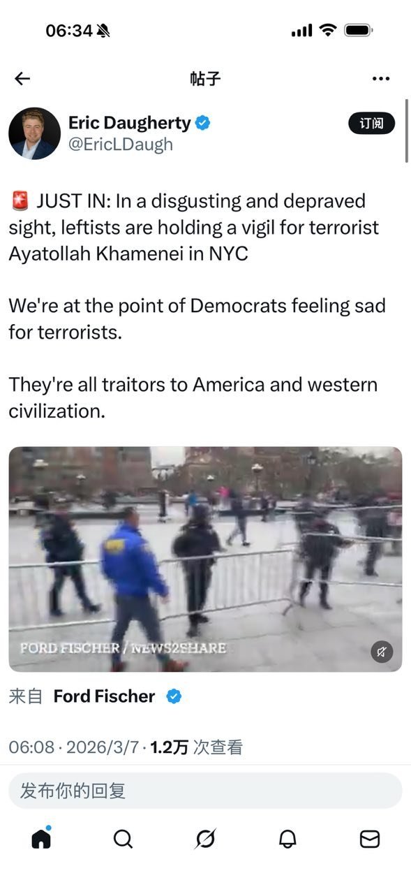 左翼人士在纽约市为哈梅内伊举行守夜活动。