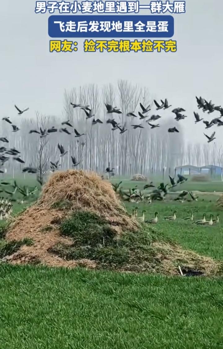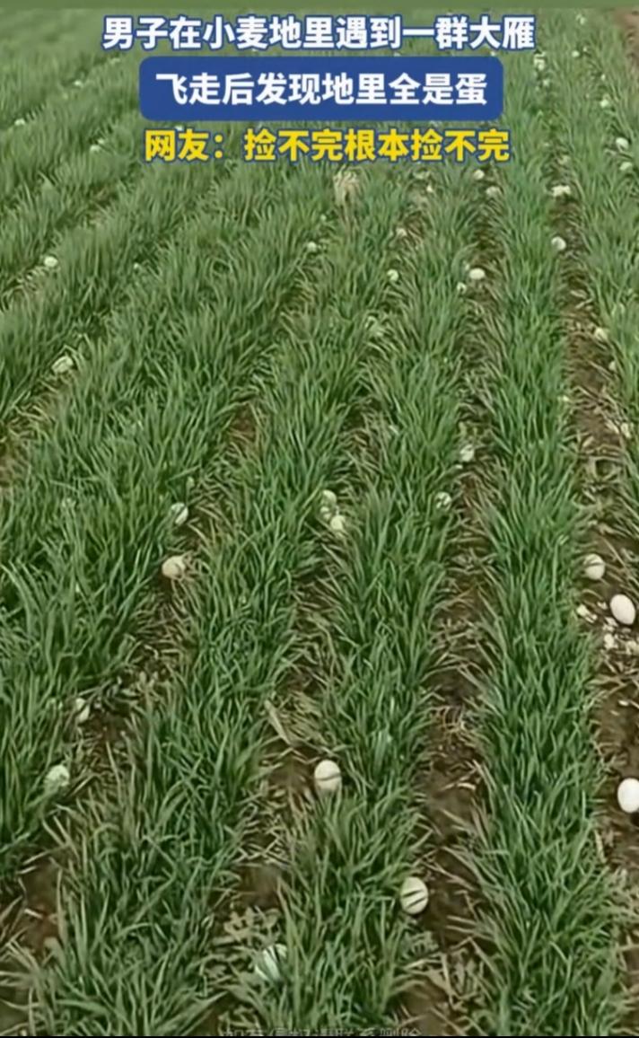 近日,“男子麦田遇雁群,地上全是蛋”的视频火了。视频里,河南一男子去麦田看麦苗,本以为是普通野鸟,走近才发现是大雁。大雁淡定地待在原地,麦垄间全是青白带斑的雁蛋。 这画面既惊喜又震撼,网友们看法不一,有人觉得“活久见”“太治愈”,还有人开玩笑“捡不完,根本捡不完”。但理性的网友都提醒,大雁是“三有”保护动物,雁蛋也受法律保护,不能碰。男子没靠近、没触碰,只是记录后离开,这做法值得点赞,也是给大家上了堂野生动物保护课。春季候鸟北迁,生态变好,鸟儿才愿靠近人类区域,我们要好好保护它们。