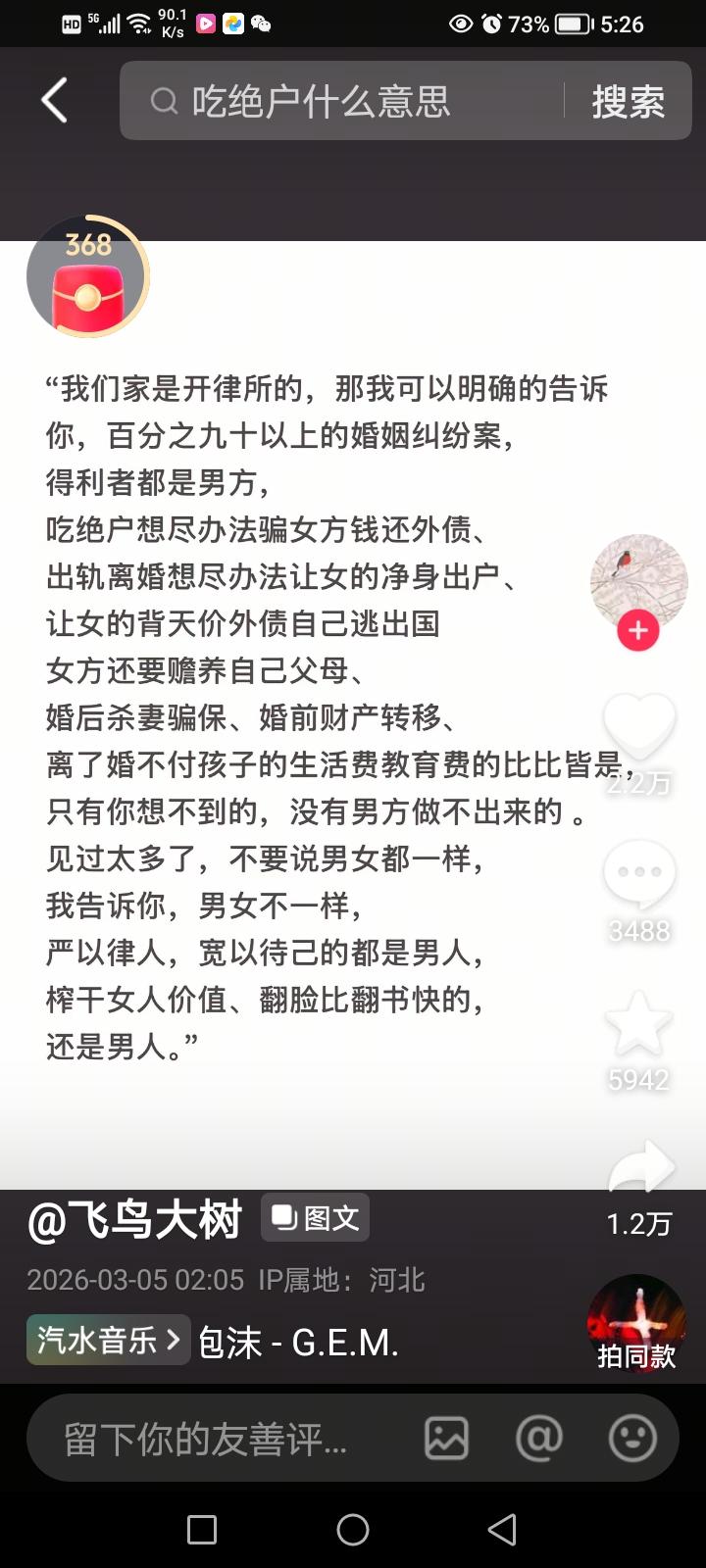娶不到媳妇不怪女人,不怪彩礼,应该怪男人,怪公婆,谁让他们重男轻女,逼打女胎,逼生儿子呢? 因为重男轻女,女性人口比男性少几千万。怪彩礼有什么用,就是不要彩礼,所有女人全嫁了,还是会有几千万的男人娶不到媳妇,为啥,因为女性人口不够,女人不够配,自然就有男人娶不到媳妇,所以提高女人地位,多生女儿,男人和公婆不再重男轻女,做到女儿儿子都一样,不再打女胎,不虐待女儿,女性人口自然就提高了。女性人口多了,男人还怕娶不到媳妇吗? 婚后婆家如果不把女人算计的那么狠,女人还恐婚不嫁人吗? 重男轻女 恐婚