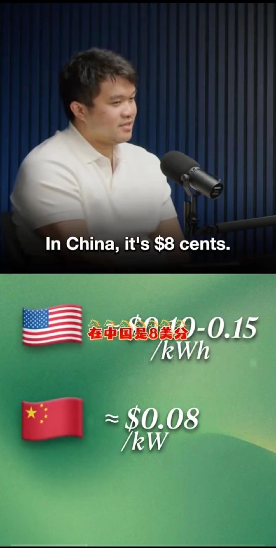美国人又要破防了,在国外某档节目里,外国主持人兴致勃勃的问一位东方面孔的年轻人: “你认为世界上哪个国家应该是模范国家?是我们应该追随的?” 主持人心里正趾高气昂想着小伙子应该给出的答案,没想到小伙子脱口而出: “中国!” 主持人没得到自己想要的答案,一时语塞,小伙子看出了主持人的尴尬,只见他自信的给出了解释,他说: “为什么?只要看看能源价格就明白了,看看欧洲人的电费,大约是25到30美分,美国是10到15美分,而在中国只要8美分,如果你再看人均用电量,在过去的25年里,美国基本没有增长,中国在价格一直持平的基础上人均用电量上涨了7倍!如果你看看中国的建设,他们有真正的垂直能源整合公司,由国家运营电网进行分配,你知道当西方人还在争吵是石油天然气还是可再生能源更好的时候,中国人已经把一切都建设好了,他们铺设的太阳能和电缆比所有西方经济体加起来的都多!” 主持人哑口无言,想说些啥反驳些啥可是又没有数据支持,因为事实胜于雄辩!