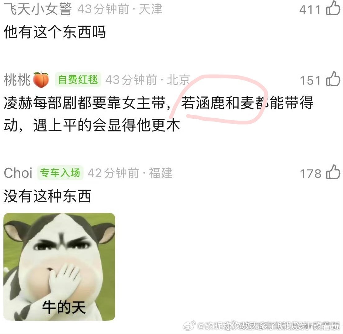 咱就说说凌河演技差单独说行吗?麦带动了个啥啊带动了大ip古偶集均2500还是大ip正午剧集均1000?鹿和他两口子一样的难听嗓音捧读大吼式演技对着难听吼又带动了个啥啊?若涵比他还糊又怎么带动啊?