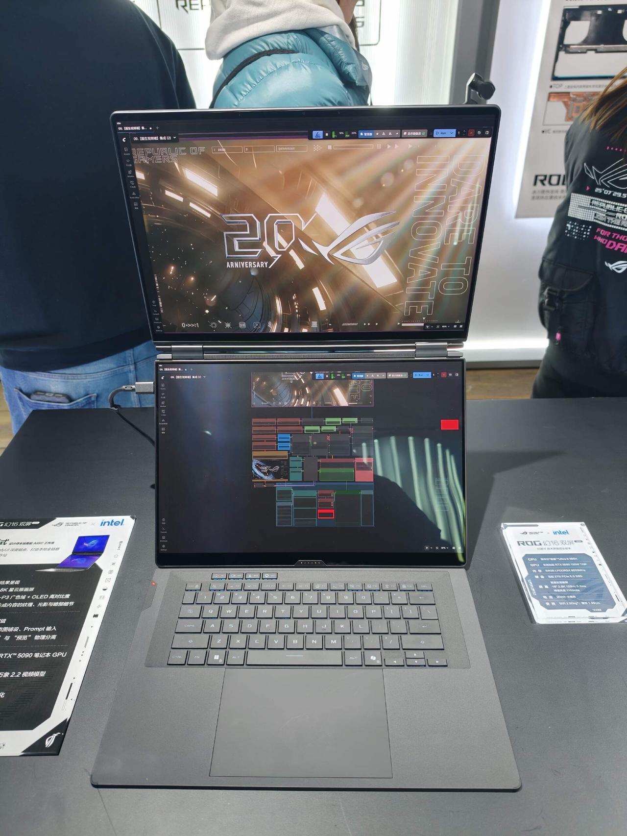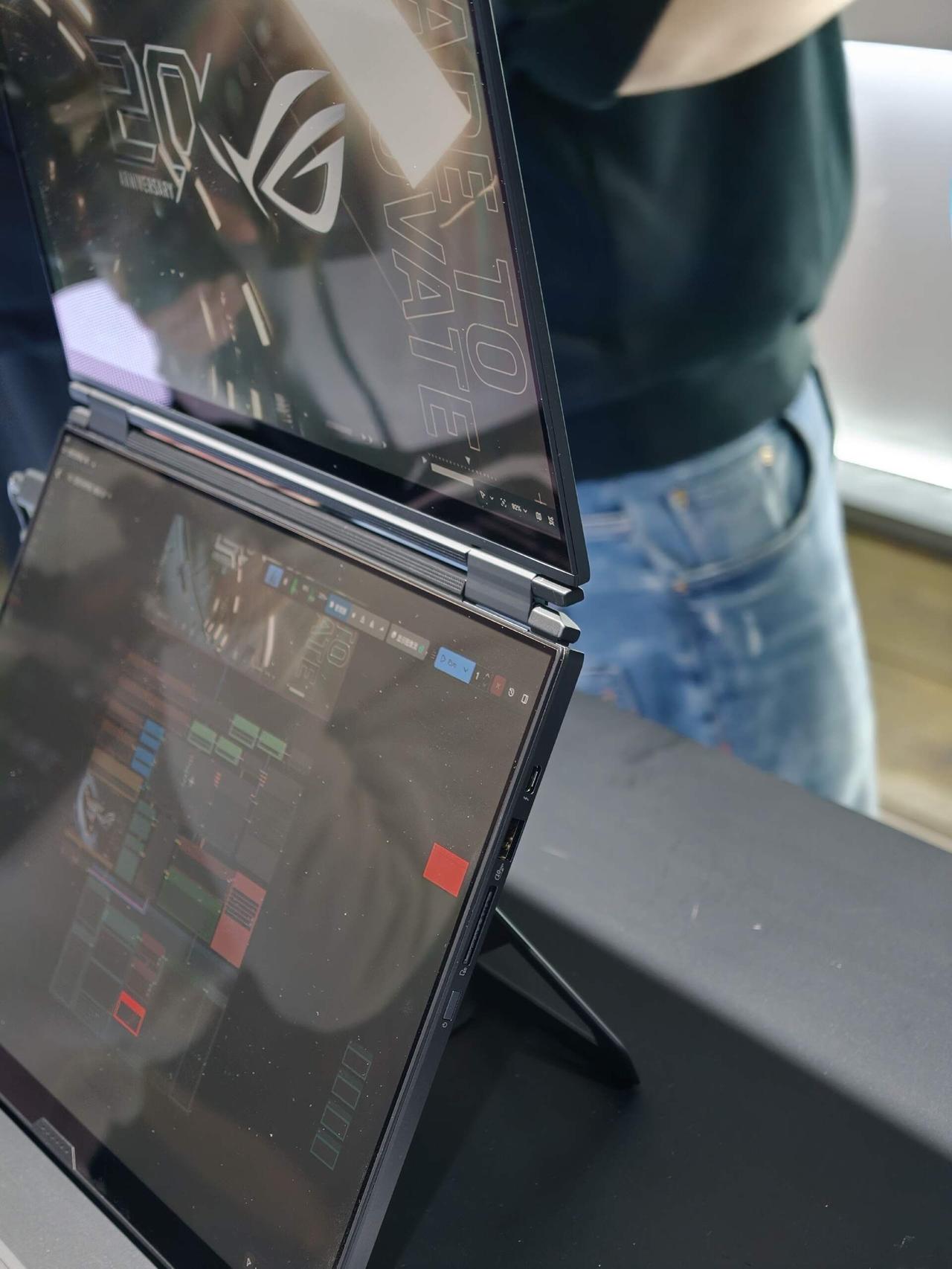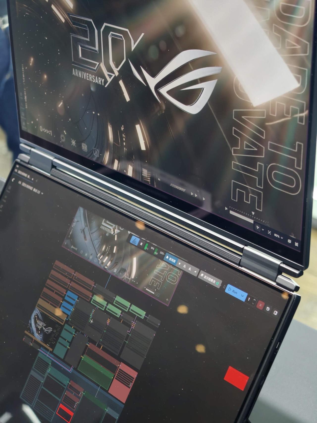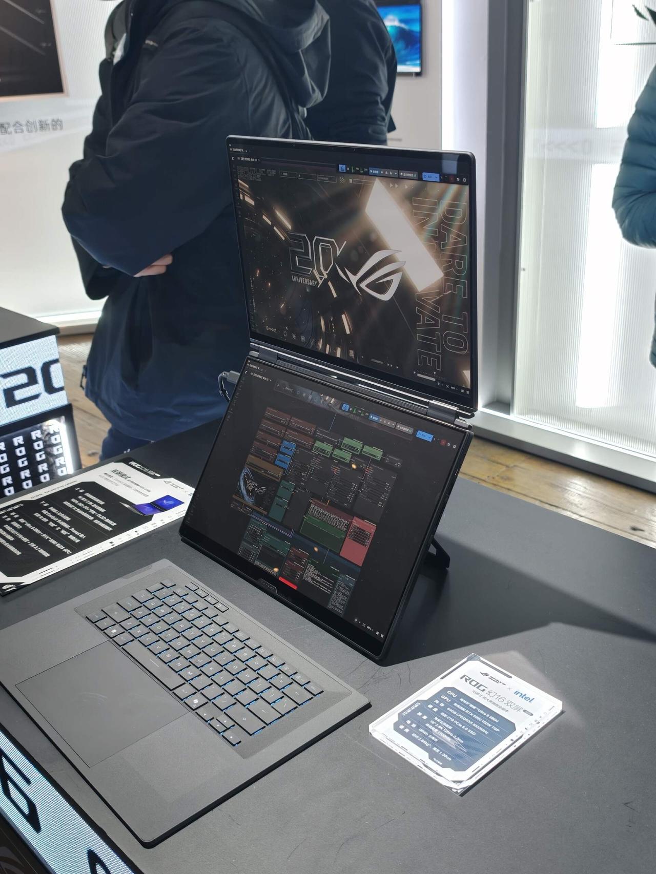 ber....原来你是ROG折叠屏???[机智] 厉害了ROG也出折叠屏笔记本了!去了ROG的技术沟通会,上手体验了一下ROG幻16 双屏,我只能说太敢想了!拥有笔记本、双屏、分享、帐篷、书本五大形态,键盘采用分体设计,可以直接拆下来,屏幕折叠相当于自带支架?都省去外接显示器了。。 以前用笔记本好多人喜欢外接显示器组双屏,用ROG这玩意儿直接一台设备搞定。折叠的厚度也控制得不错,没我想象中那么笨重,完全可以塞进包里外出携带办公啥的。铰链弯折的手感也很棒,可以多角度悬停,像我这样竖着立起来也无压力,背后有支架可以撑住。感觉这种双屏很适合设计师、程序猿和新媒体从业者啊,创作和效率直线提升!