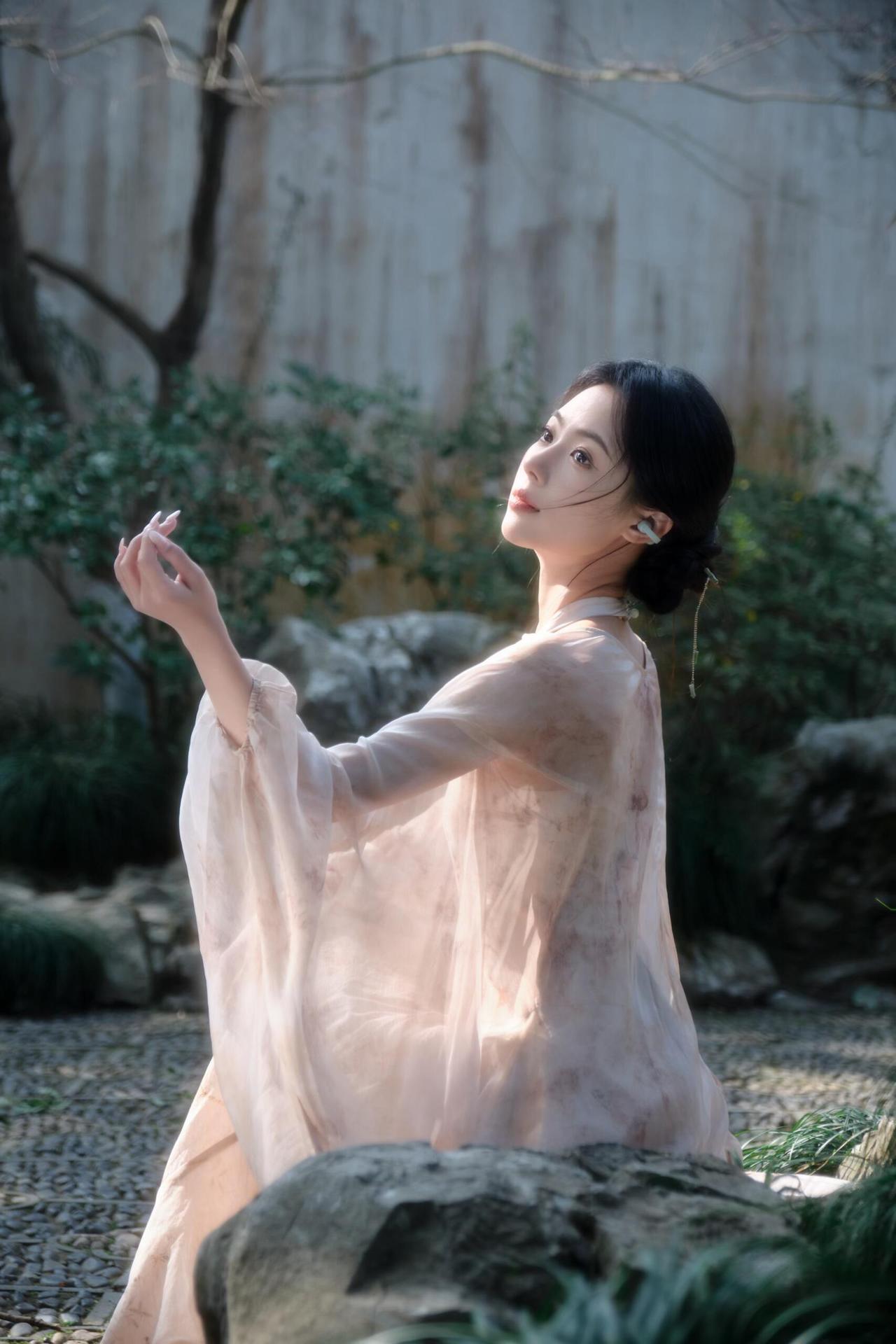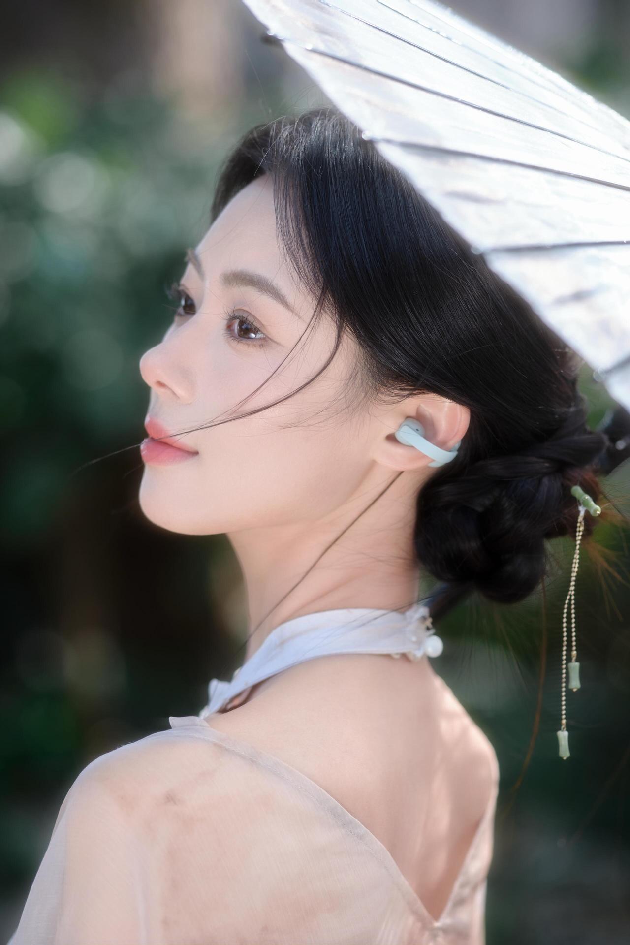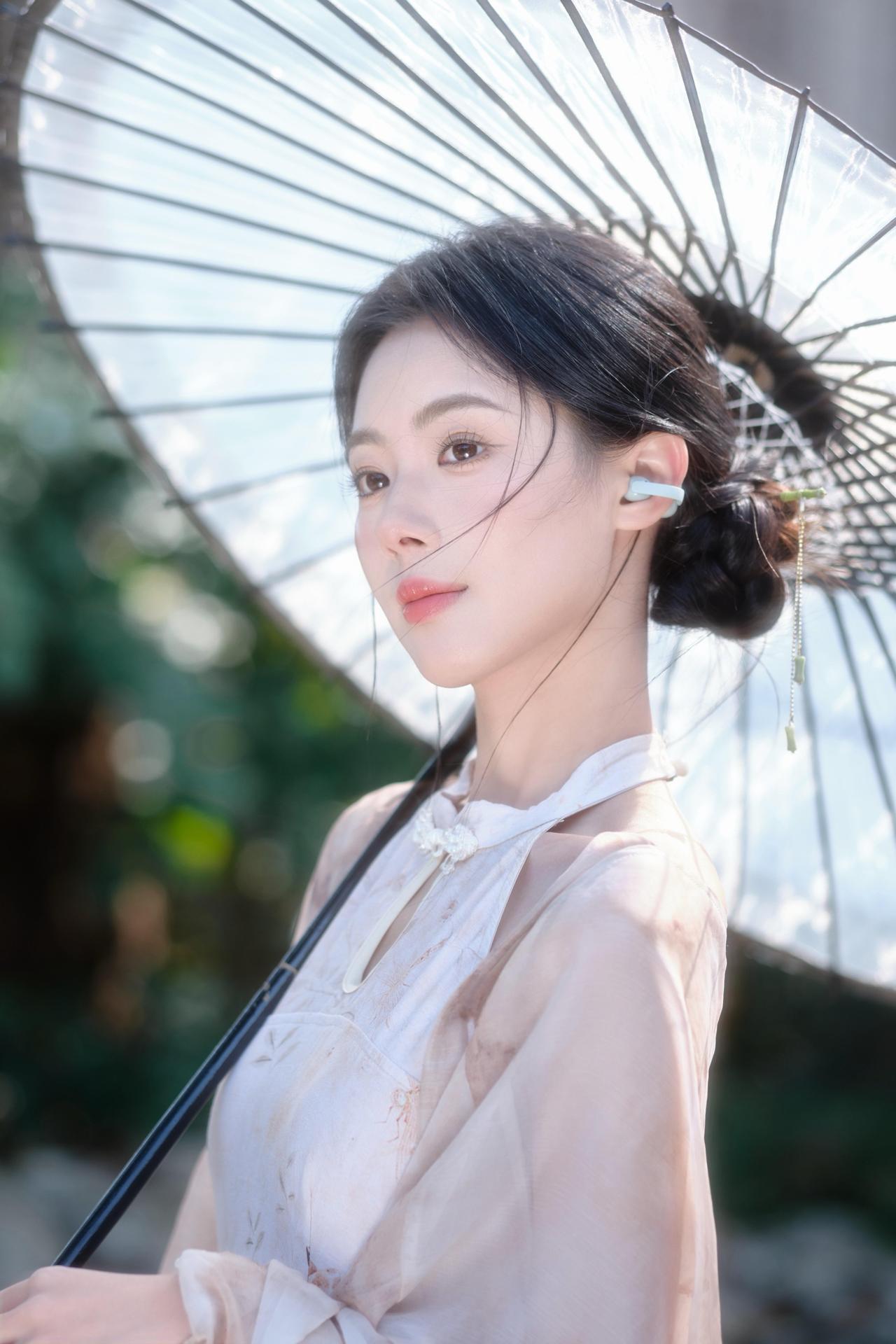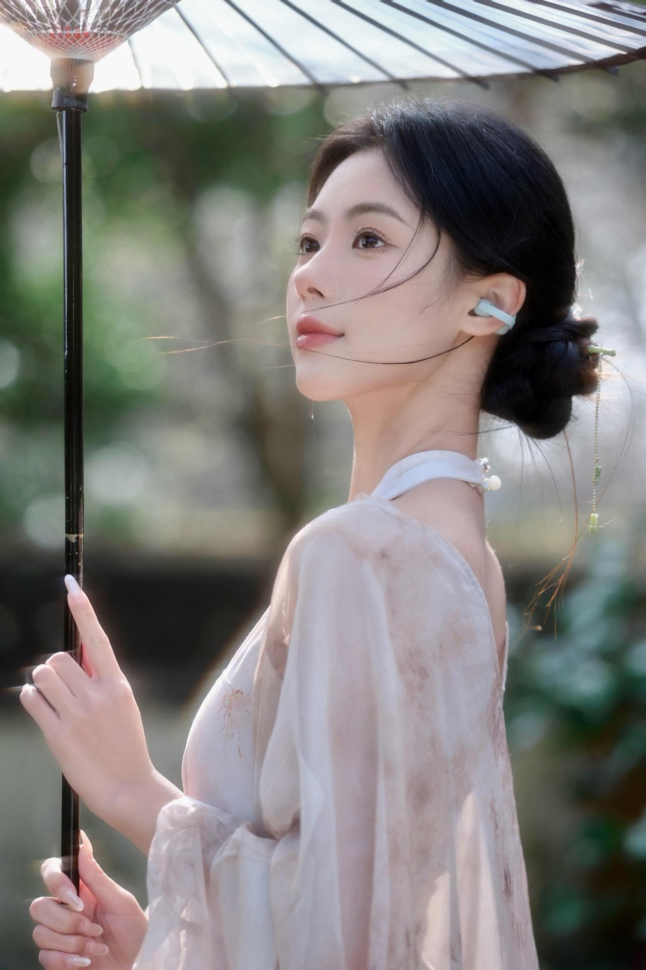 轻纱拂面,伞下美人如画。
