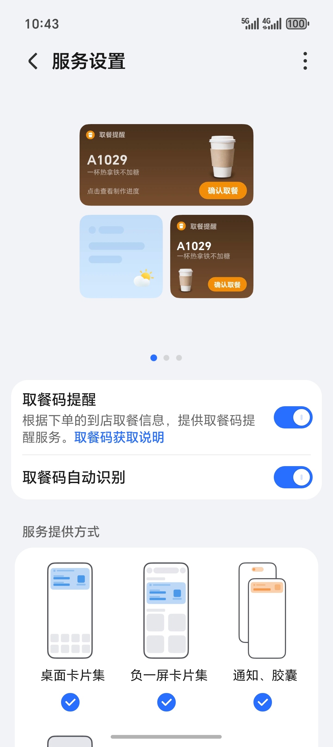 取餐码提醒已经开启批量推送,功能设置在YOYO建议本地生活里