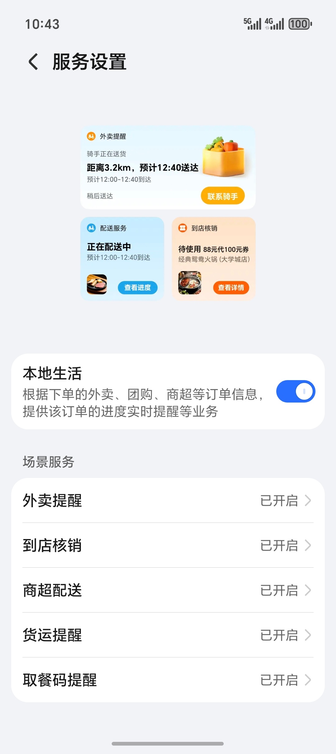 本地生活除了新增取餐码,还新增了货拉拉提醒服务和商超配送提醒服务