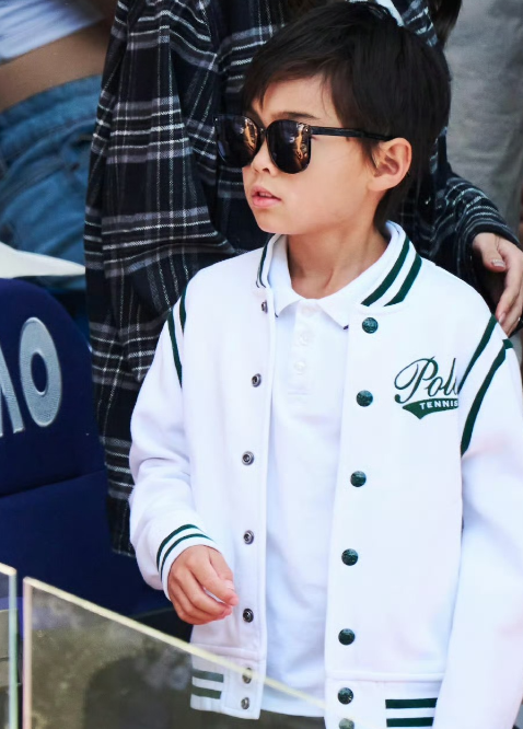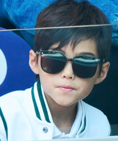更让人没想到的是,俩人8岁儿子罗密欧的正脸首曝光,这才是真正的焦点。 此次现身,罗密欧独自坐在观众席第一排,白绿拼色棒球服搭配黑墨镜,酷拽气场拉满。