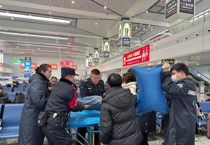 3月6日10时45分,“3B有一名旅客在座位上不停地抽搐,需要你们帮助!”阜阳西站服务台前传来旅客急促的呼喊声,客运员朱蕾蕾快速和旅客一同赶去查看,并通知值班站长穆书雯和客运值班员张梦夏。只见一名女子侧身坐在地上,抽搐逐渐缓解但意识昏迷。张梦夏和民警共同小心将陈女士侧卧在地,解松衣物,观察口腔防止窒息咬舌。10时53分,穆书文询问情况并征求旅客同意后立即拨打120急救电话。经了解,陈女士家在建瓯,在阜阳探亲结束准备回建瓯,亲人自述患有癫痫病史,时常发作。 在等待急救人员期间,车站工作人员全程守护在旁,持续观察旅客身体情况变化,轻声安抚帮助其稳定情绪。11时05分,120通过急救绿色通道到达现场,车站工作人员协助医护人员将旅客平稳抬上救护车,送往就近医院接受进一步治疗。(素材提供:朱蕾蕾)@上铁阜阳北站