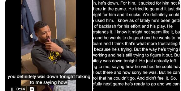 斯玛特谈起了在掘金队主场,艾顿因为左膝酸痛而提前退赛后的精神状态。 斯玛特说:”他下去了,然后第四节没有上场比赛,这对他是非常糟糕的事情。他尝试过,但感受不太对劲,这非常令人沮丧,我知道 最近他因为自己的努力和表现受到了许多的批评。他自己也明白这一点,我知道他可能看起来不像在意一样,但他确实明白,他想好好的表现,想用自己的能力帮助球队,但有点伤,我想这才是让他更沮丧的地方,因为他一直在努力的。“ 艾顿需要为下一份合同努力,斯玛特已经重生,打出了自己的防守。而艾顿除了偶尔几场的良好表现外,离人们对他的期望相差甚远,并没有在篮下撑起湖人的天空。雷迪克更喜欢用海斯,艾顿的护筐和抢篮板并不好。