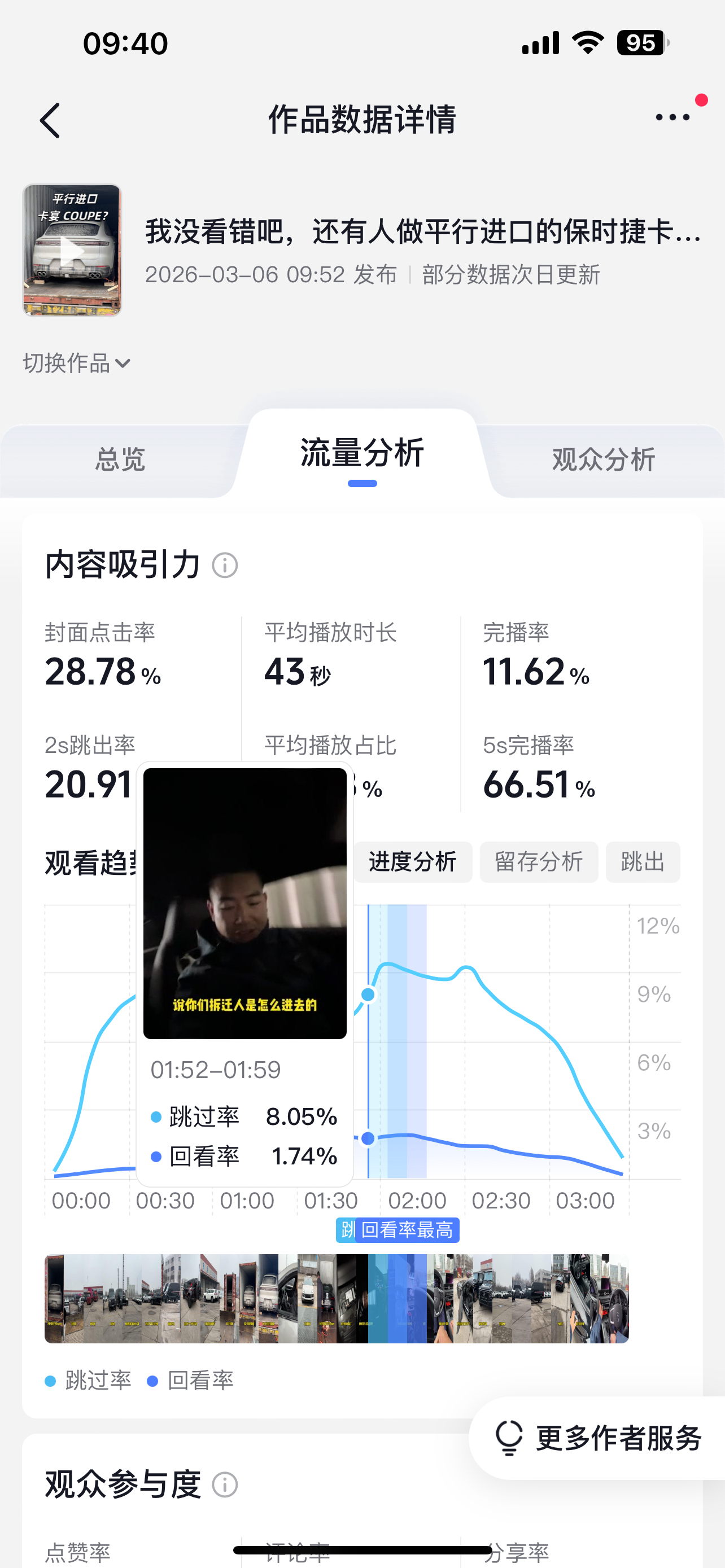 我昨天发布的保时捷还有GR Supra开箱视频播放量都还不错。我在抖音上好久没有这么高播放量的视频了,目前看破300万应该是没什么问题,其他平台表现也挺好。