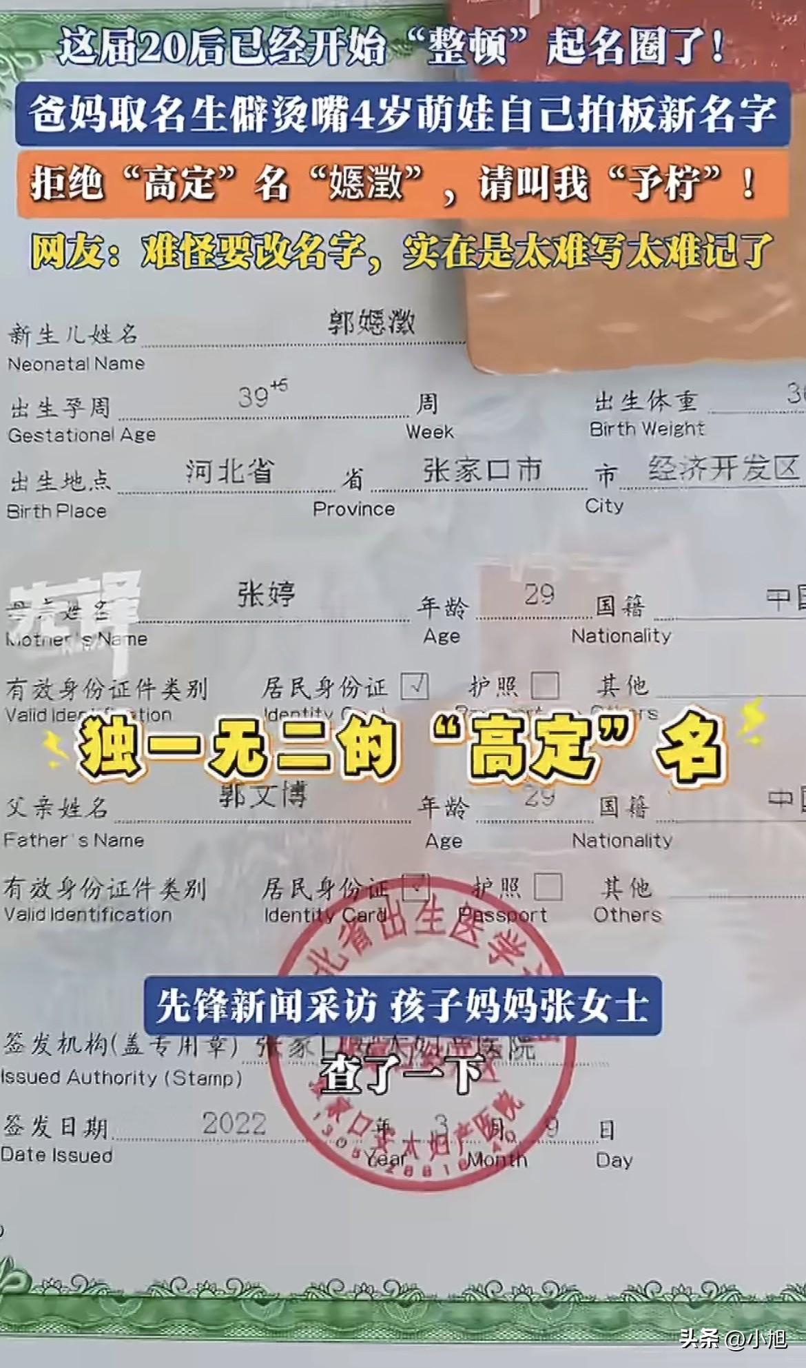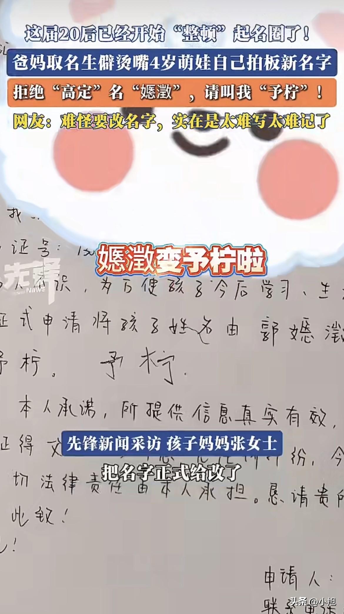 绝了,河北有个4岁的小姑娘,把自己名字给“开除”了。 她原本叫郭嫕澂。这名字是爸妈精心起的,妈妈当初还特意查过,全国就她一个人叫这个,夫妻俩挺满意,觉得独一无二,寓意也好。 结果孩子一天天长大,问题来了。带出门去,只要一介绍名字,对方准懵。这俩字没一个人认识,爸妈得现场教学,教人家念“yì chéng”。每次都是这套流程,解释得嘴都干了。 妈妈后来想,这马上要上幼儿园了,老师点名点不出来,孩子想写自己名字,那一笔一划得写到什么时候去? 一家人商量着改个名。这次跟以前不一样,爸妈选了几个备选的,头一回认认真真问了4岁女儿的意见。小姑娘一点没犹豫,自己拍板:就叫郭予柠。 一个4岁孩子,可能连“予”和“柠”具体啥意思都说不清楚,但她清清楚楚知道自己不想要那个谁都念不出来的名字。 其实这种生僻字起名的现象挺普遍的。很多父母起名时的心态,就像中科院心理所专家分析的那样,独生子女家庭,父母把对“唯一”的期望投射到名字上,希望孩子独一无二,避免淹没在人海里。 但这“唯一”的代价谁在承担呢?是孩子。 有学术研究实实在在证明了这个事。一篇发表在《Journal of Asian Economics》的论文,基于2019到2022年江苏大一新生的心理健康调查数据,发现名字里带有生僻字的学生,心理健康水平明显更低。他们的抑郁水平更高,感受到的社会支持更弱,更容易采取消极的应对方式。 这不是什么小困扰,是实打实的数据。 名字生僻带来的麻烦是连锁反应。专家提醒,公安系统的字库确实能录入冷僻字,但教育、医疗、金融这些部门的字库不一定同步。办入学、办社保、办银行卡,万一系统里显示不出来或者显示成乱码,来回开证明跑断腿。有地方因为系统无法识别生僻姓氏,学生甚至被迫放弃重点高中录取资格。 日常生活中也是坎。老师上课不敢轻易点名,怕念错尴尬,时间长了,这些孩子容易被课堂互动边缘化。心理学研究说,这种长期被忽视的课堂体验,会削弱孩子的自我认同感。 还有社交。同学叫不出你的名字,或者叫错了,起外号,孩子心里啥感受?那个江苏的调查说得清楚,生僻名会让孩子更不容易融入集体。 回到张家口这个小姑娘。她可能不懂这些大道理,她只是凭直觉做了一个选择:要一个别人能叫得出、自己能写得来的名字。 妈妈后来说,女儿这个年龄已经有自己的想法了,要尊重。 这个细节其实最打动人。一个4岁孩子,在还不完全理解“自我”这个词的时候,已经在捍卫自己的“自我”了。她知道自己不喜欢什么,也敢说出来。 郭予柠,予是给予,柠是柠檬。比原来那个生僻拗口的,确实更适合一个活泼可爱的小姑娘。 这件事看着小,但挺有说头的。这届孩子真的不一样,他们从这么小就开始有主意,知道自己要什么。有时候大人想得太复杂,什么独特性、寓意深刻,反而不如孩子简单直接。 名字说到底是个符号,最重要的功能是被人呼唤。如果一个名字让呼唤它的人张不开嘴,让拥有它的人感到困扰,那它承载的那些美好寓意,还能剩下多少呢? 你们身边有因为名字生僻闹过笑话或者遇到过麻烦的朋友吗?