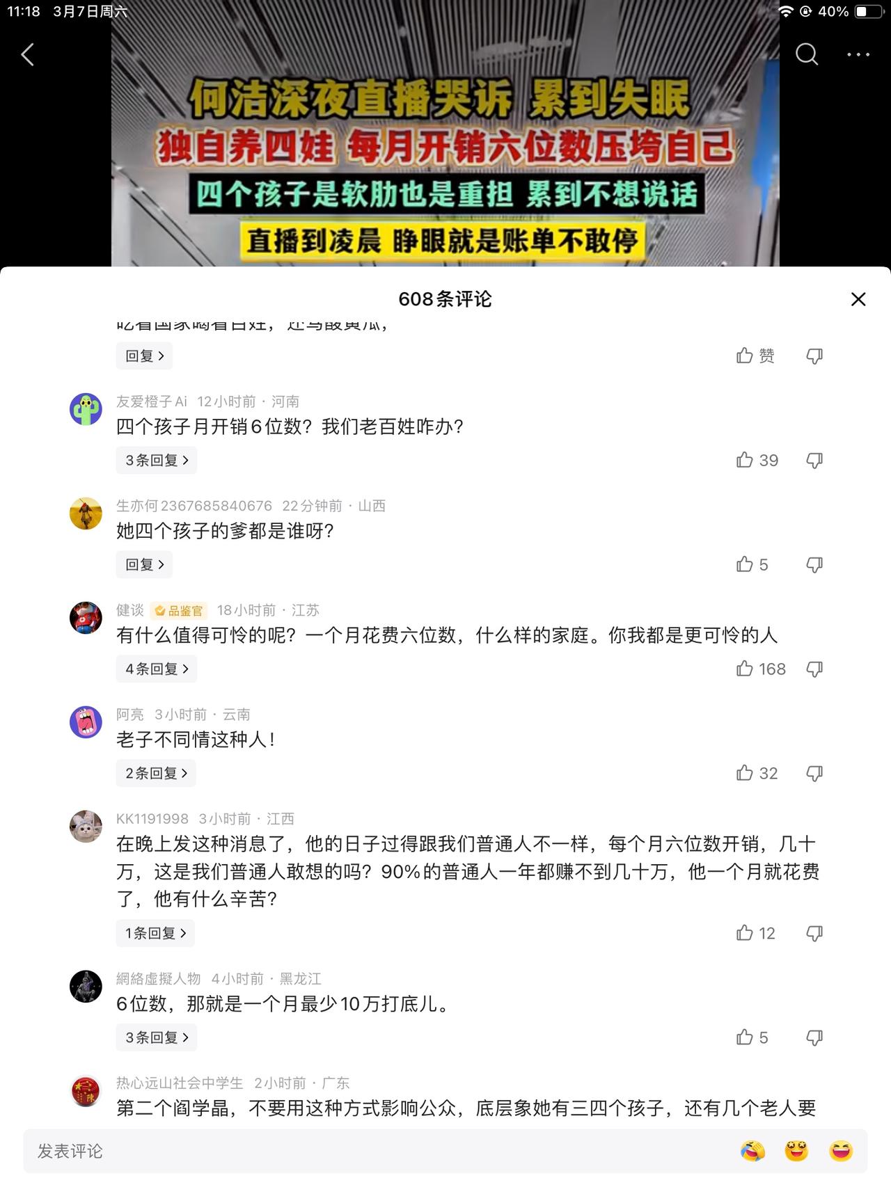 又一个闫某晶? 四个孩子一个月花十万?保姆都辞了,司机也没有,能花十万块钱。可能明星家庭觉得不多吧! 普通人,月入三千养一个孩子。她四个,真能生。感谢给生育政策贡献GDp。肚子真好使。前夫∵不给一分钱。真是好样的。自己的孩子都不想养。 去开演唱会啊!给谁当嘉宾也行啊!这些年,光顾着生孩子了。朋友们是一点也不联系啊!挣钱的资源都丢了吗? 没有打算啊洁啊!
