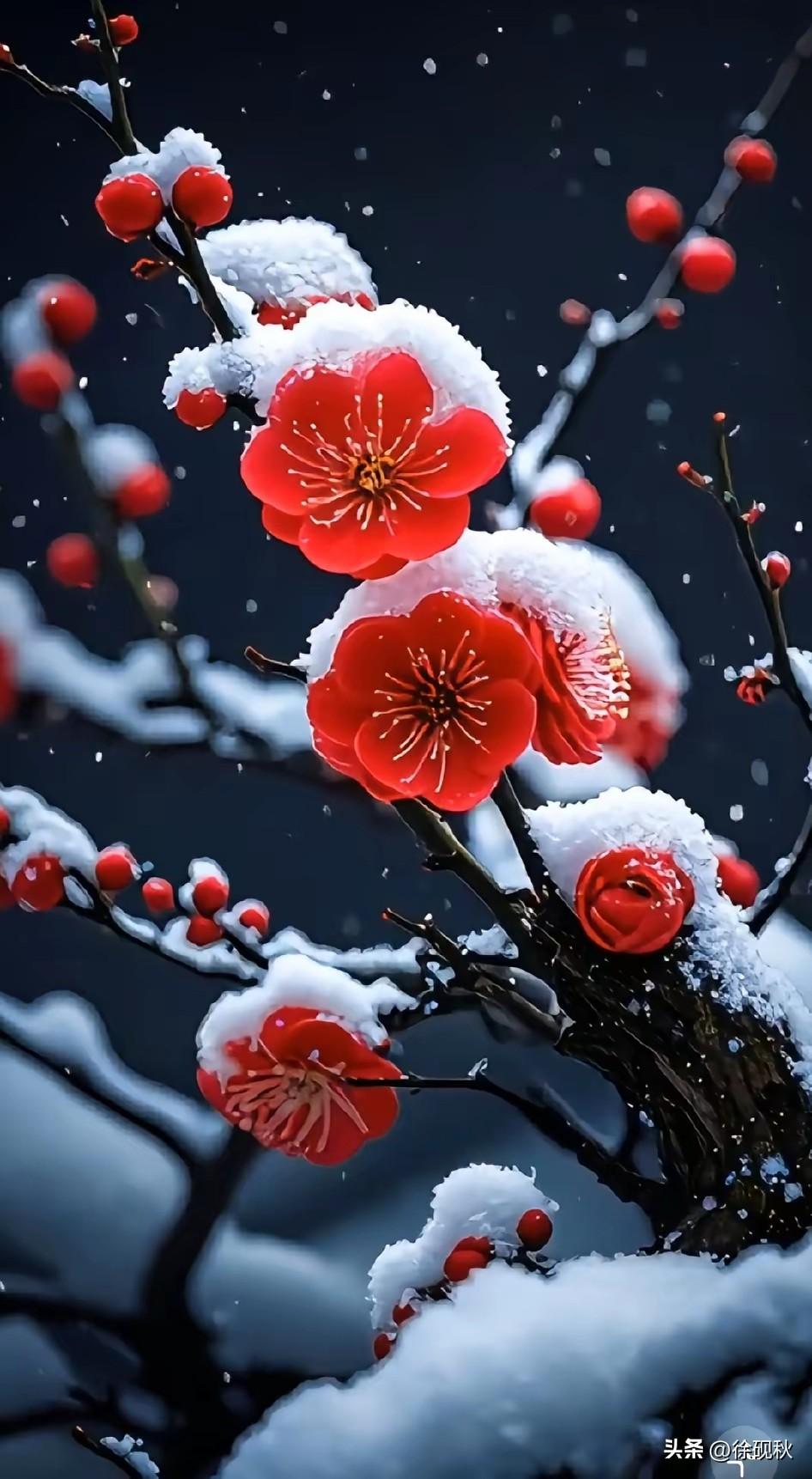 枫叶欢喜漫天雪, 疏影横斜迎春来。