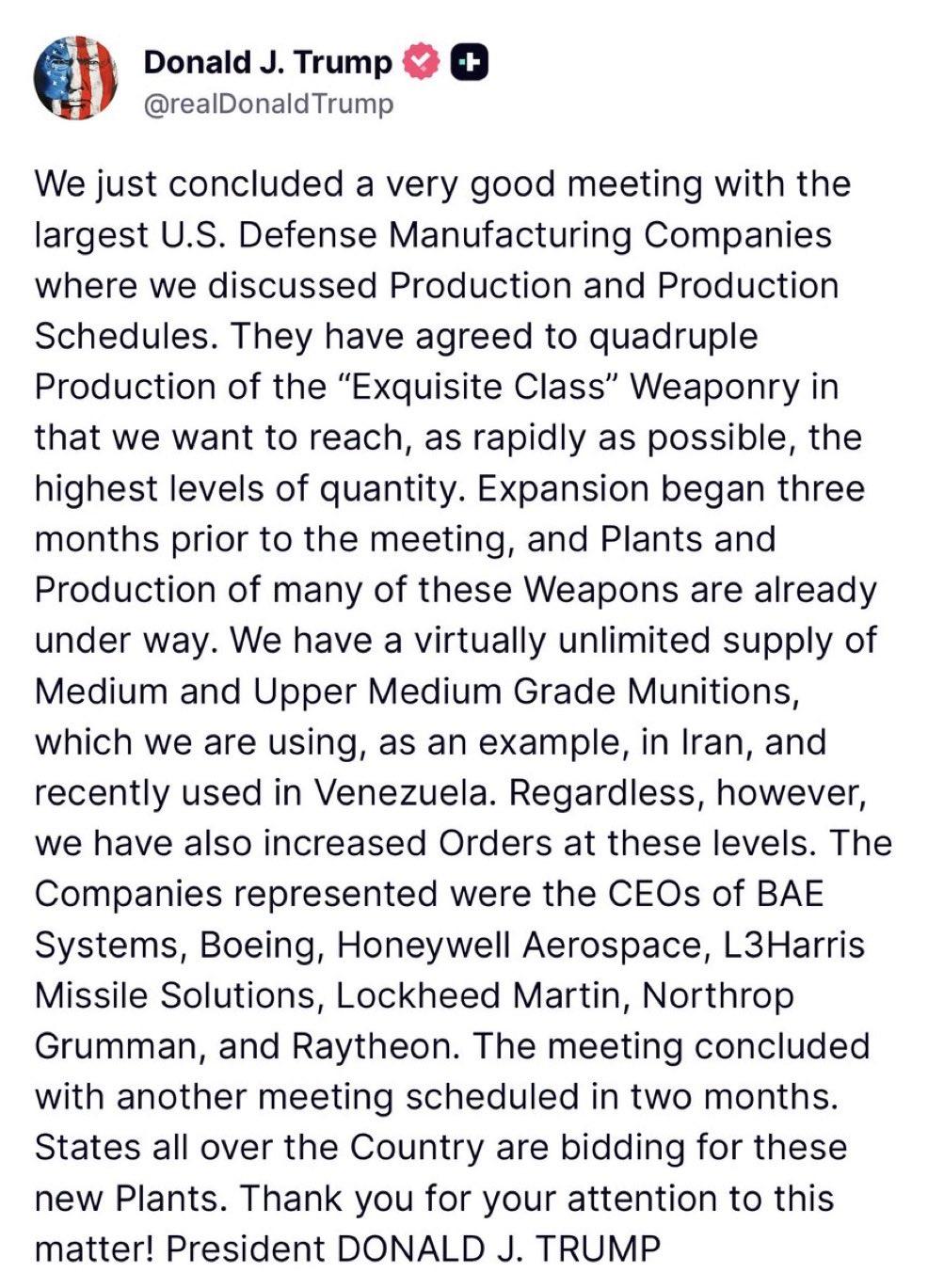 多久能提货? 美国军火商洛克希德·马丁公司:“我们已同意将关键弹药的产量提高三倍。” 马丁公司还特别加了一句:“我们几个月前就与赫格塞斯和副部长范伯格开始了这项工作。” 这些军火公司能不能实现不知道。但增产的最大瓶颈往往不在总装厂,而在那些生产关键部件的“卡脖子”环节。