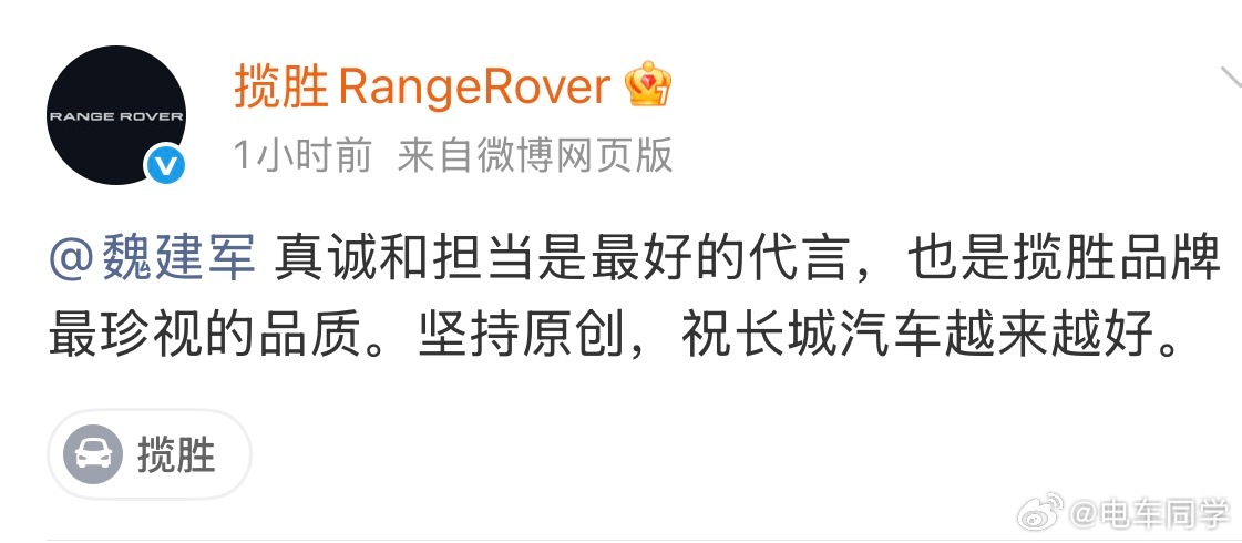 路虎揽胜回应了昨天魏建军的道歉,都有格局,也都得到了大家的赞扬。 本周车圈大事件