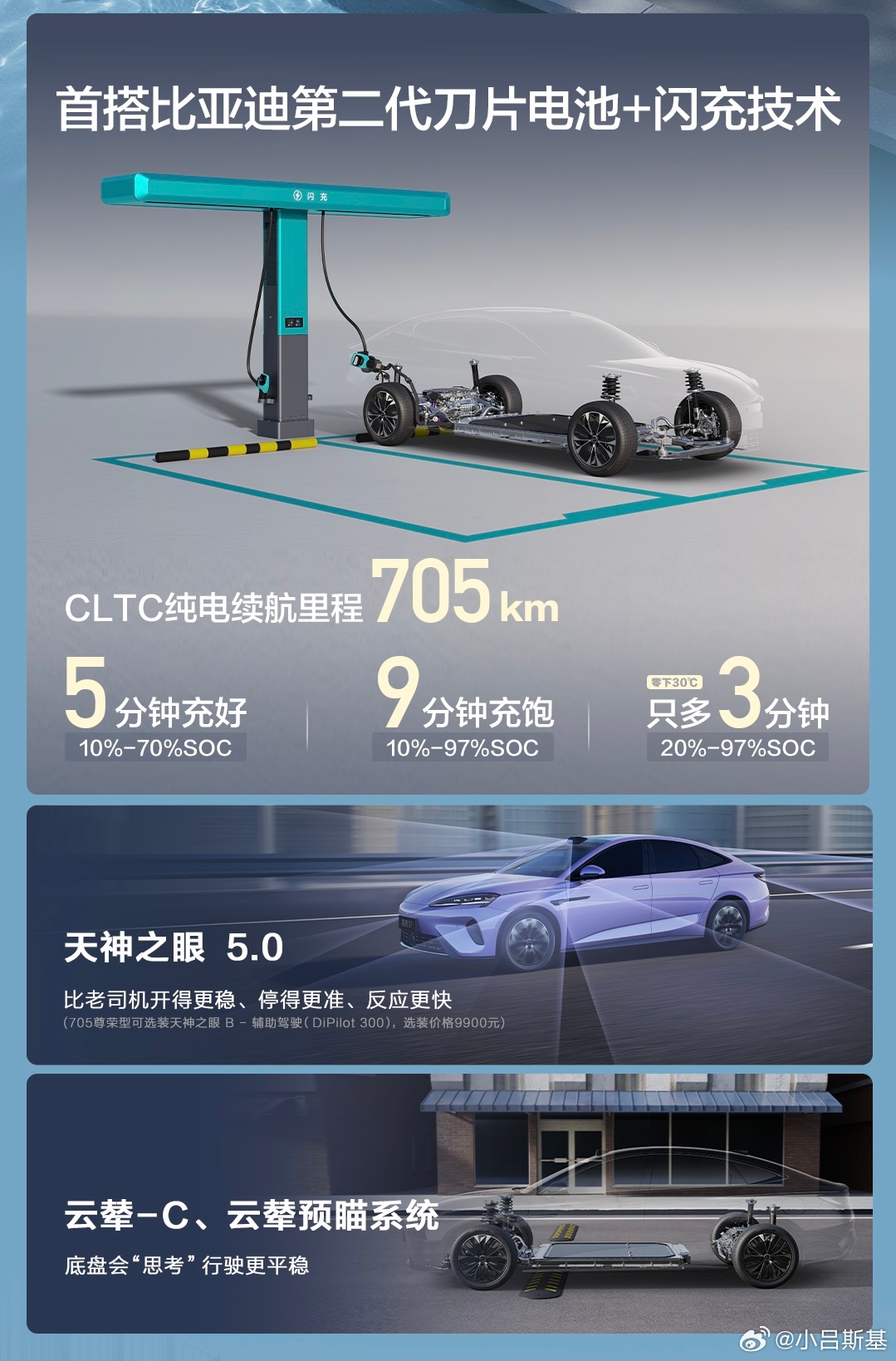 “705km续航+二代刀片电池+闪充”也是16/17万价位的顶级三电了,内部舒适性配置在这个价位算比较丰富的。在智能化方面,相比价格接近的新势力产品不算出彩,但该有的智驾功能也都有了。