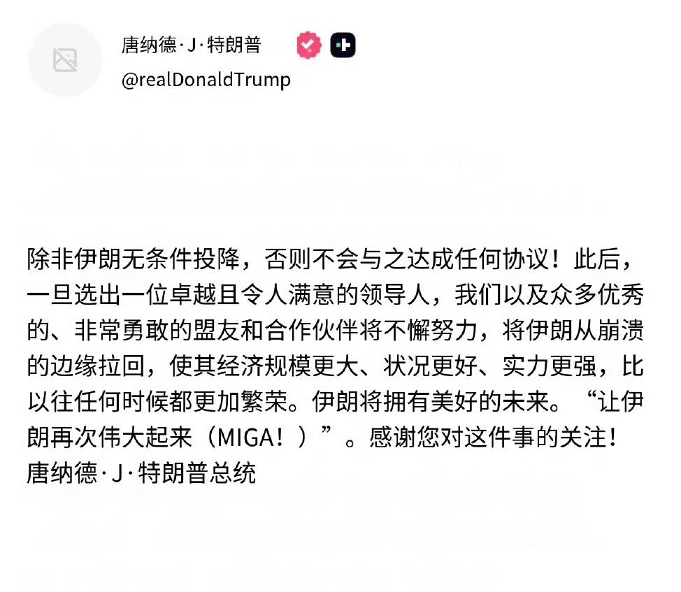 特朗普“喊话”伊朗:只要无条件投降,美国和众多盟友会齐心协力帮助伊朗比以往任何时候都更加繁荣,美国可以让伊朗再次伟大。 口号喊得震天响,条件也足够诱人,那伊朗会不会相信呢?恐怕很难。 美国人总是这样,打你的同时美其名曰是来帮助你,你不要反抗,因为我会帮你选一个更好的总统,幸福指日可待。 结果呢? 伊拉克繁荣了吗?阿富汗繁荣了吗?并没有,那些被美国打垮的国家不仅没有繁荣,比以前更穷了。 美国为何不打非洲?因为那里没啥油水,就算有也不够美国塞牙缝,没必要冒险。 但是中东有石油啊,那就不一样了,试想一下,如果伊朗是个贫油国,美国还打吗?恐怕都懒得看一眼,投入产出比不对等,没啥意思,随便吧。 美国入侵伊朗