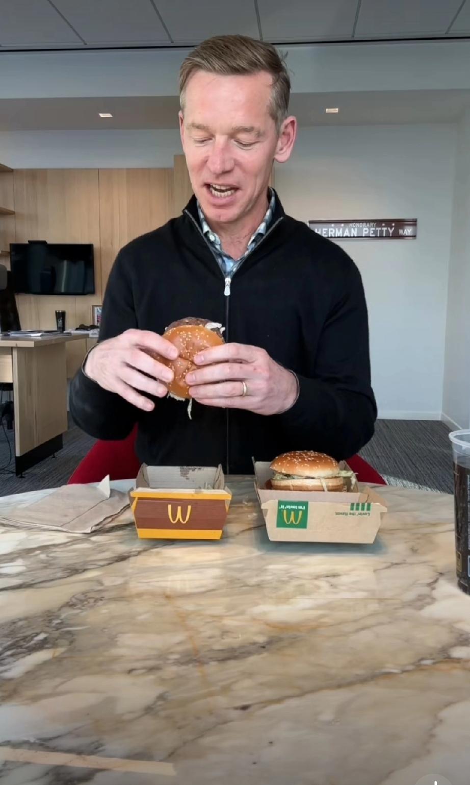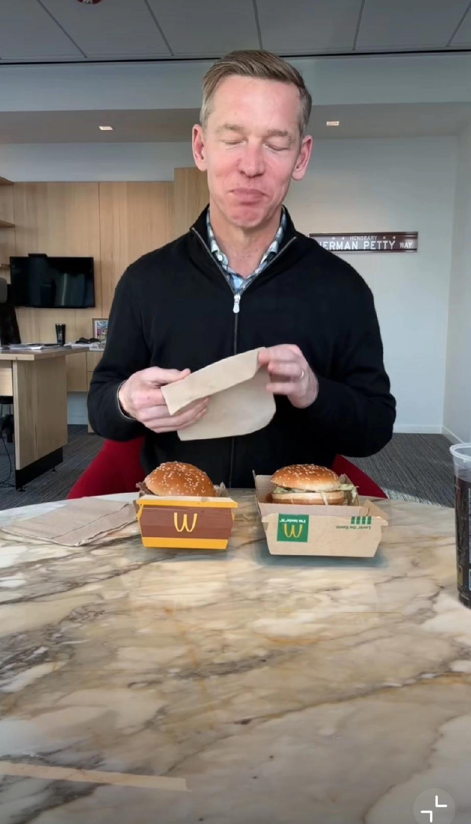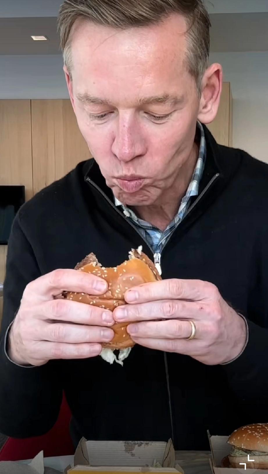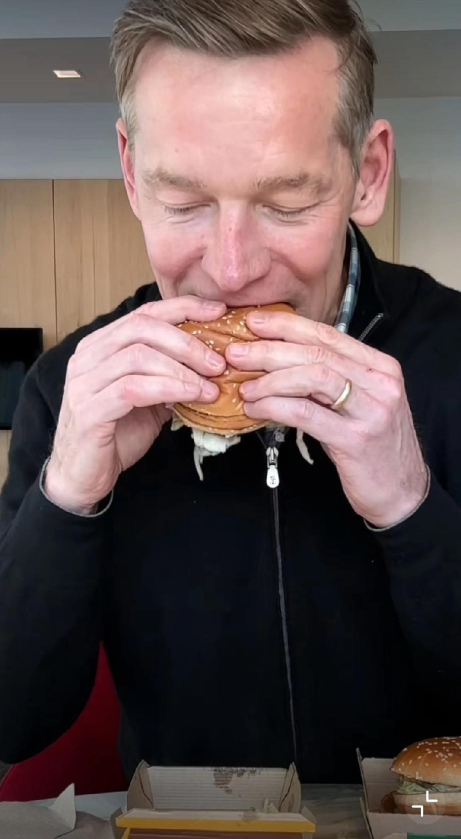 卧槽!麦当劳CEO再被网友扒出“假吃”![惊呆] 最近,麦当劳CEO克里斯·坎普斯基因为不爱吃自家汉堡的视频火爆全网,被网友疯狂吐槽,还被对家暗娼讽刺,造成巨大风波。现在,他又被扒出假吃了! 在2024年8月8日发布的视频,麦当劳CEO克里斯·坎普斯基为了推广当时新推出的鸡肉巨无霸,对经典牛肉巨无霸和鸡肉巨无霸进行试吃。他先吃的经典巨无霸,咬完后咀嚼了几口并没有看到吞咽的动作,而是直接剪辑成他擦嘴的动作,被网友怀疑吐掉了,所以才突然剪辑到拿纸巾擦嘴。 而更让大家震惊的是在吃鸡肉巨无霸时,他刚嚼上两口就转成拿纸巾假装擦嘴的镜头,被网友认为其实吐到纸巾里没有吃,然后又立刻剪辑到“品尝”完后说“非常棒”的镜头。总之,全程没看到他吞咽任何汉堡的动作……麦当劳数字化 麦当劳鸡腿肉 麦当劳年夜饭