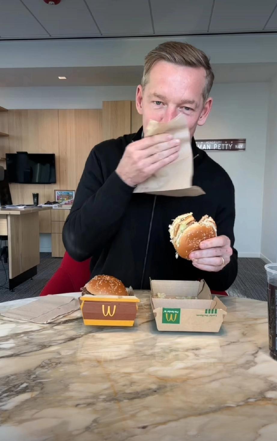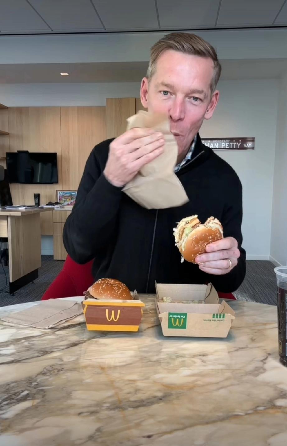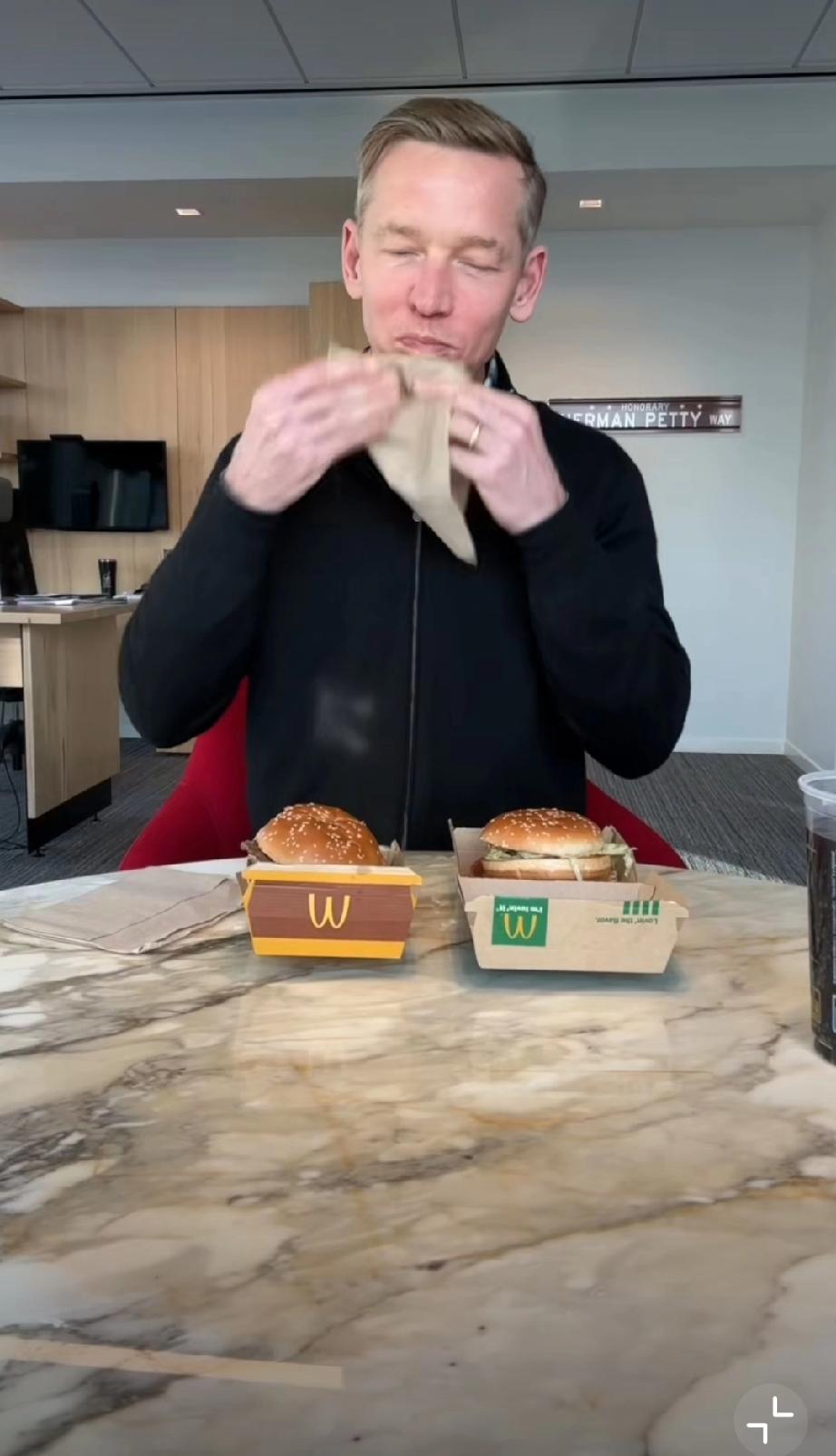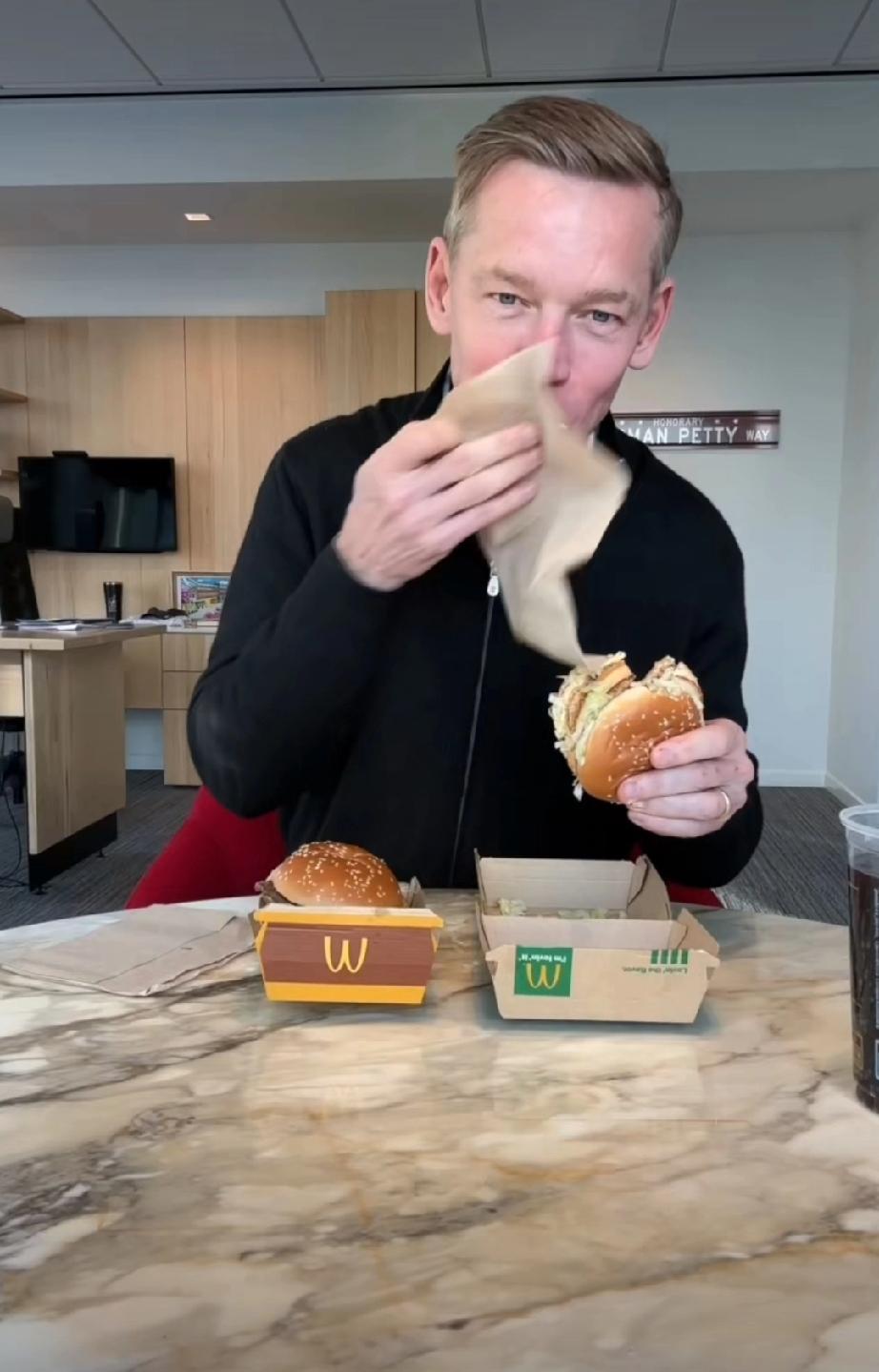 卧槽!麦当劳CEO再被网友扒出“假吃”![惊呆] 最近,麦当劳CEO克里斯·坎普斯基因为不爱吃自家汉堡的视频火爆全网,被网友疯狂吐槽,还被对家暗娼讽刺,造成巨大风波。现在,他又被扒出假吃了! 在2024年8月8日发布的视频,麦当劳CEO克里斯·坎普斯基为了推广当时新推出的鸡肉巨无霸,对经典牛肉巨无霸和鸡肉巨无霸进行试吃。他先吃的经典巨无霸,咬完后咀嚼了几口并没有看到吞咽的动作,而是直接剪辑成他擦嘴的动作,被网友怀疑吐掉了,所以才突然剪辑到拿纸巾擦嘴。 而更让大家震惊的是在吃鸡肉巨无霸时,他刚嚼上两口就转成拿纸巾假装擦嘴的镜头,被网友认为其实吐到纸巾里没有吃,然后又立刻剪辑到“品尝”完后说“非常棒”的镜头。总之,全程没看到他吞咽任何汉堡的动作……麦当劳数字化 麦当劳鸡腿肉 麦当劳年夜饭