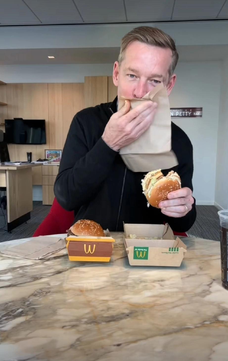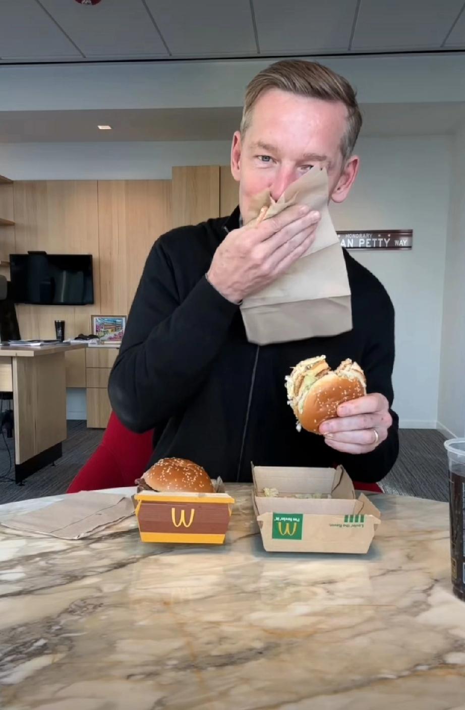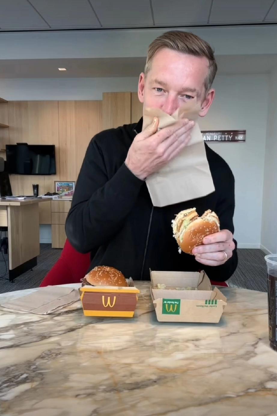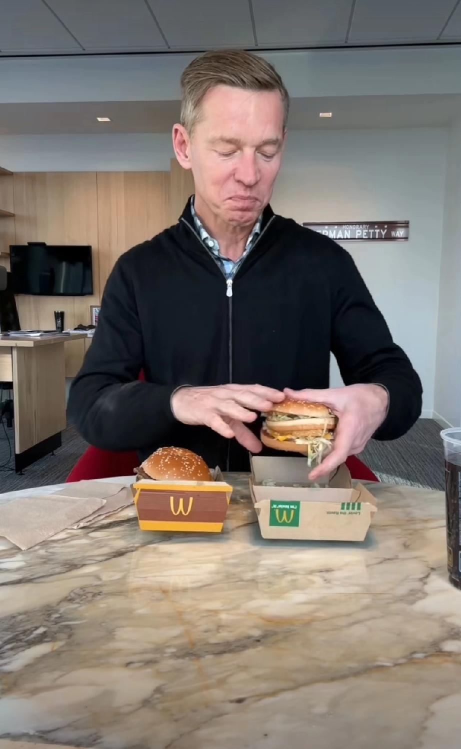 卧槽!麦当劳CEO再被网友扒出“假吃”![惊呆] 最近,麦当劳CEO克里斯·坎普斯基因为不爱吃自家汉堡的视频火爆全网,被网友疯狂吐槽,还被对家暗娼讽刺,造成巨大风波。现在,他又被扒出假吃了! 在2024年8月8日发布的视频,麦当劳CEO克里斯·坎普斯基为了推广当时新推出的鸡肉巨无霸,对经典牛肉巨无霸和鸡肉巨无霸进行试吃。他先吃的经典巨无霸,咬完后咀嚼了几口并没有看到吞咽的动作,而是直接剪辑成他擦嘴的动作,被网友怀疑吐掉了,所以才突然剪辑到拿纸巾擦嘴。 而更让大家震惊的是在吃鸡肉巨无霸时,他刚嚼上两口就转成拿纸巾假装擦嘴的镜头,被网友认为其实吐到纸巾里没有吃,然后又立刻剪辑到“品尝”完后说“非常棒”的镜头。总之,全程没看到他吞咽任何汉堡的动作……麦当劳数字化 麦当劳鸡腿肉 麦当劳年夜饭