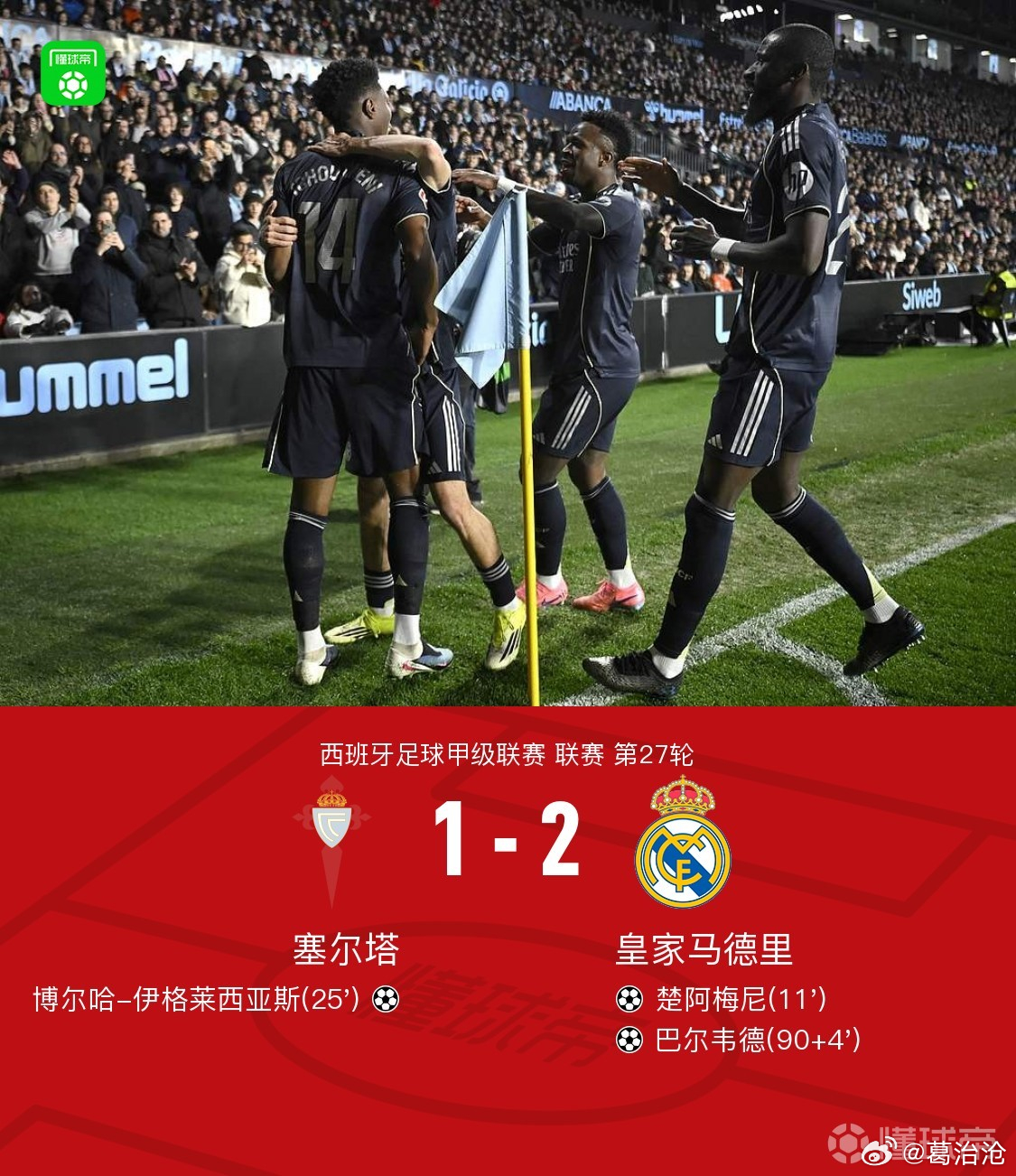 伊格莱西亚斯25分绝平狠辣扳平,塞尔塔1-2惜败皇马