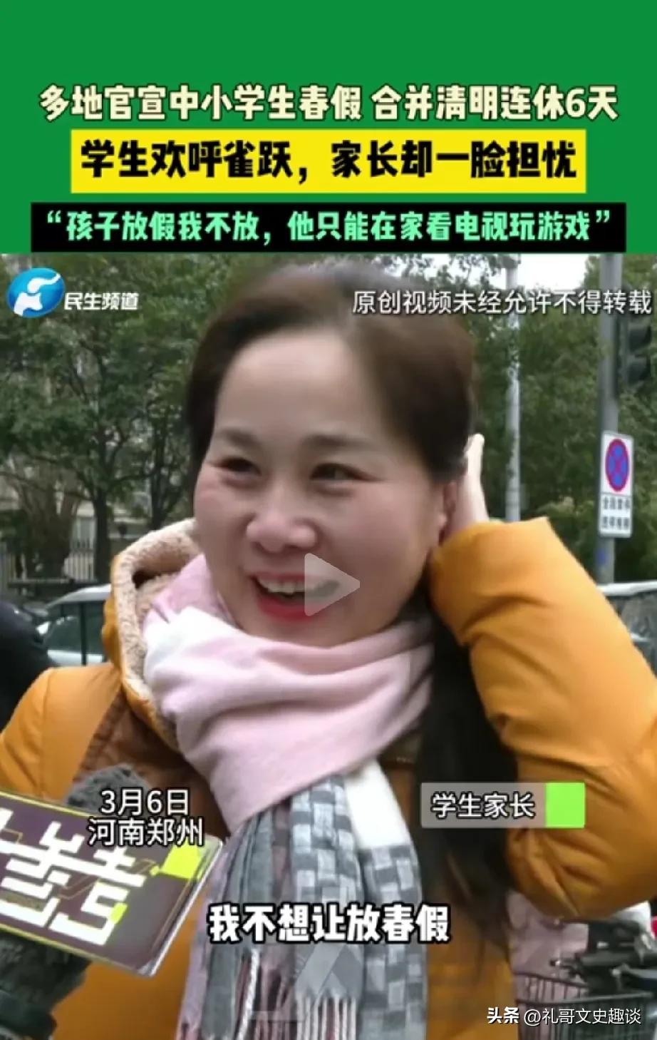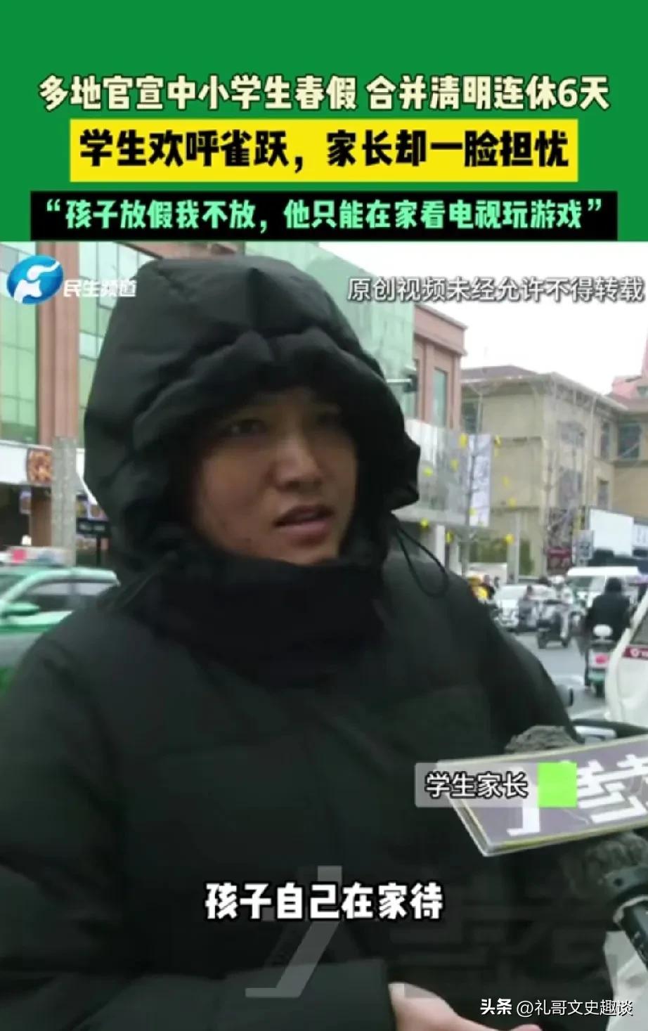 小学生春假来了,为什么很多家长皱眉头。现在很多地方官宣要放春假,和清明节一起6天假,为什么很多家长不希望放春假呢。主要原因,学生一放假,家长还得在家看着,就不能上班了。 如果你不在家看着他们都是在县城市区高楼到处跑也不安全,不下来玩,就要在房子里楼上下不来,看电视或者看手机。家长的想法还是让学生在学校里既能学知识,又有人看着他们。