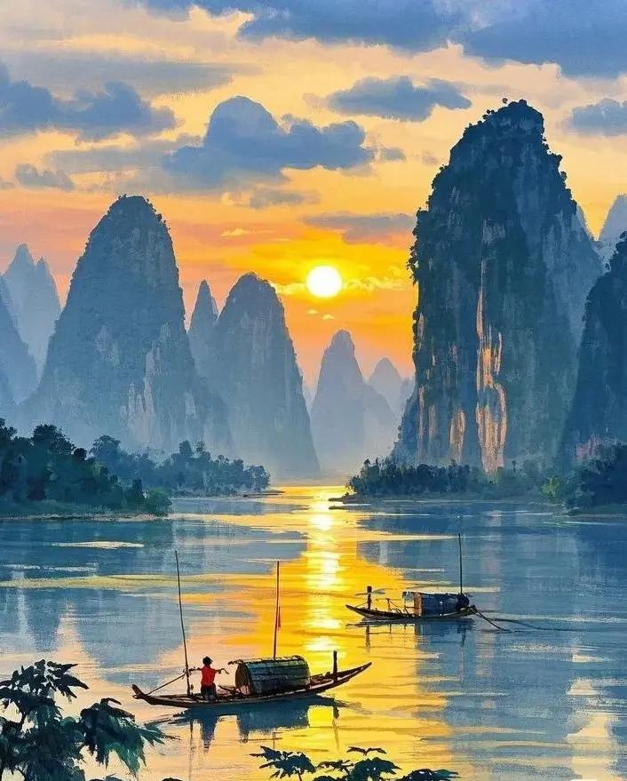 一江春水碧如绸 轻舟泛处烟霞绕 最是江南烟雨后 雾霭沉沉海蜃楼