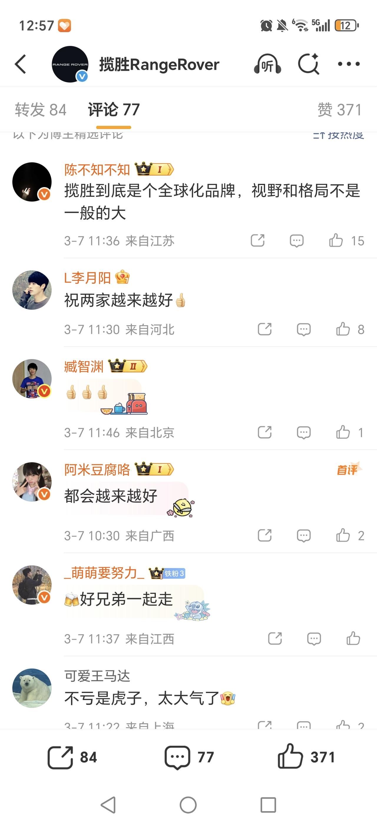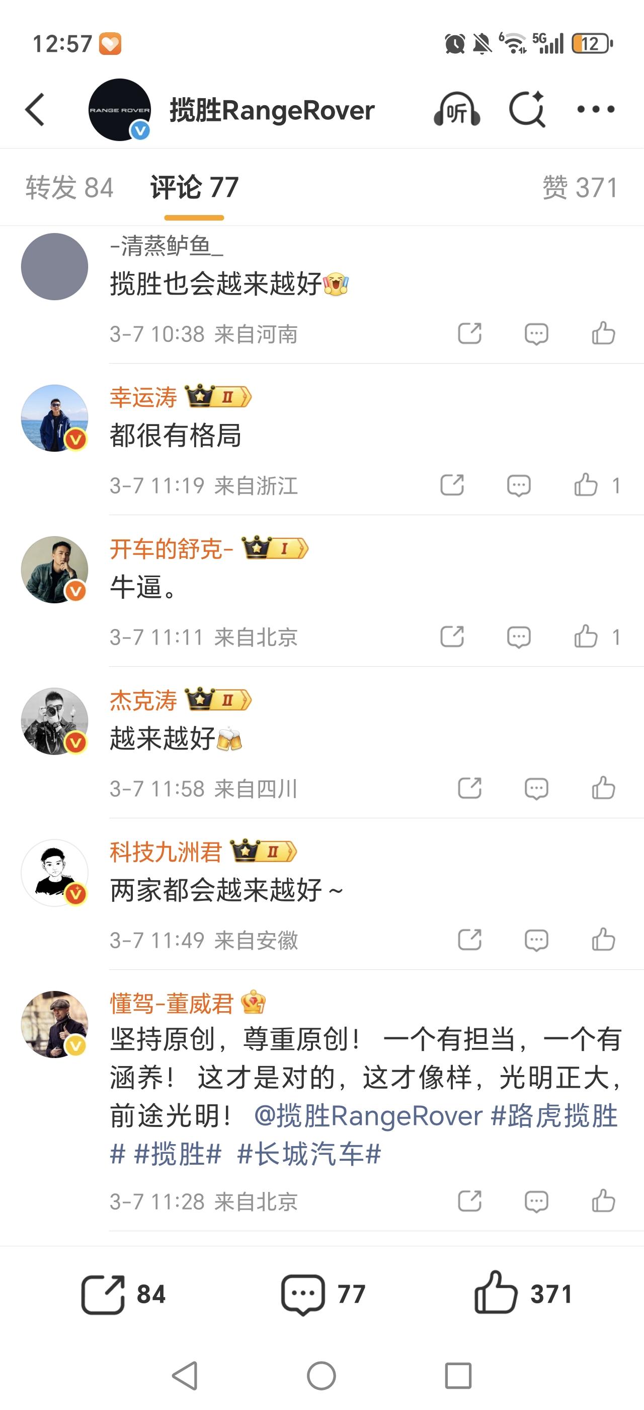 路虎方面回应长城抄袭、魏建军道歉事件:@魏建军 真诚和担当是最好的代言,也是揽胜品牌最珍视的品质。坚持原创,祝长城汽车越来越好。