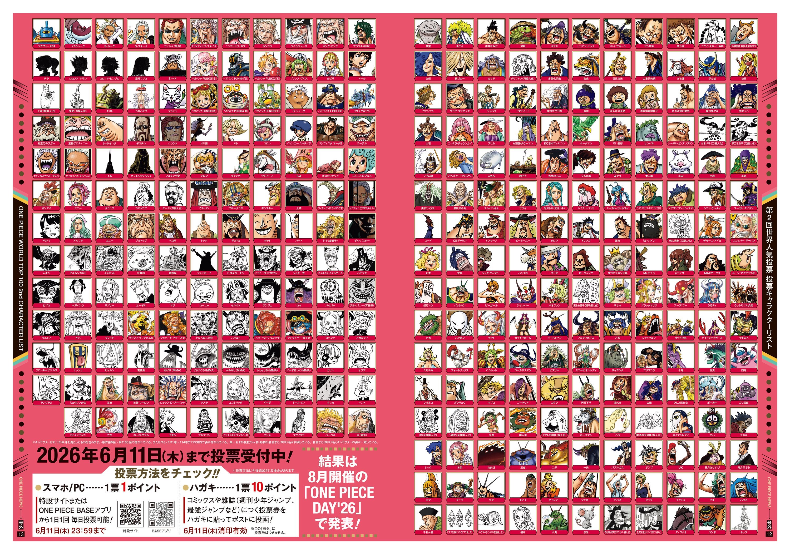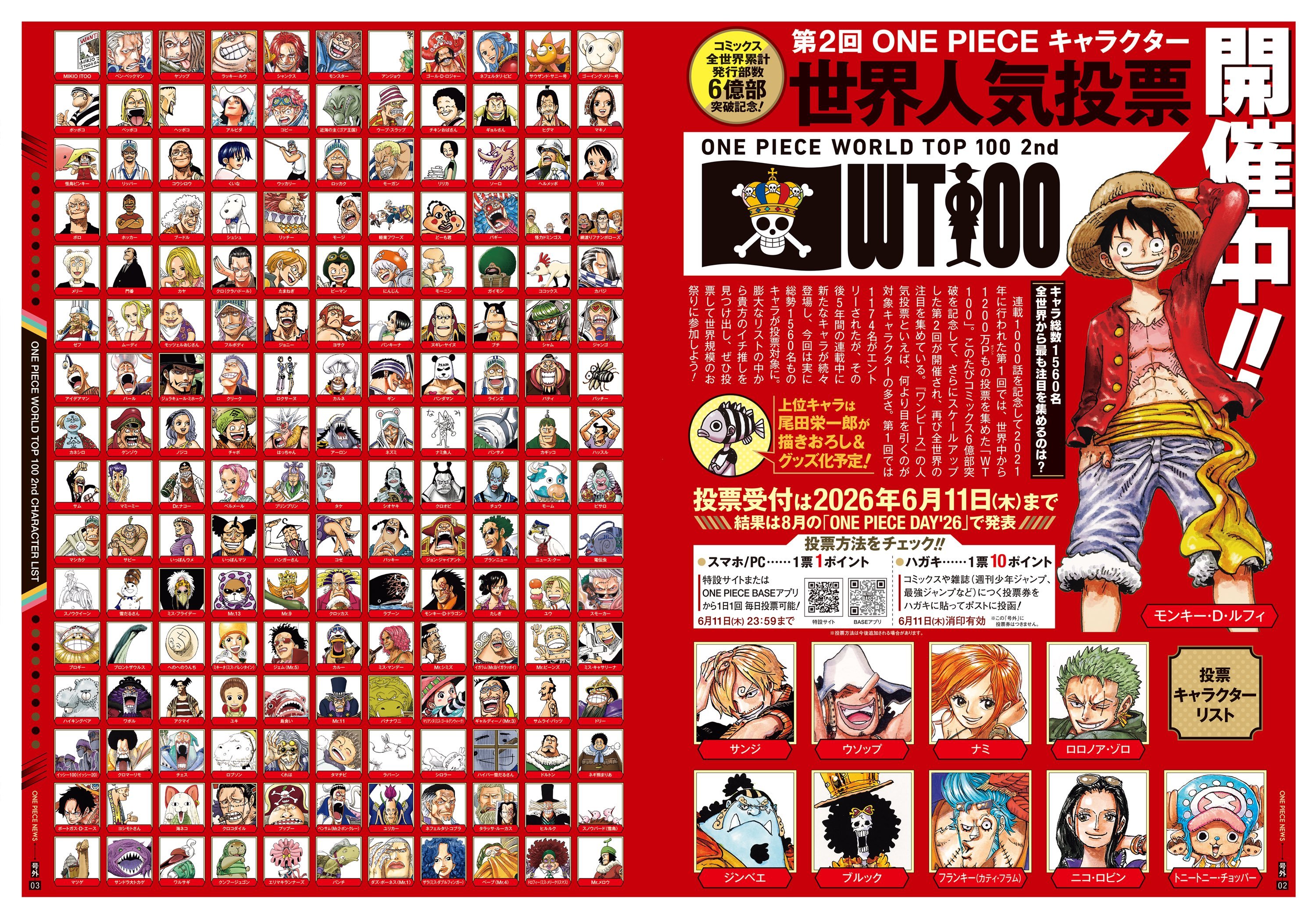 海贼王海贼王本次参与人气角色投票的1560个角色